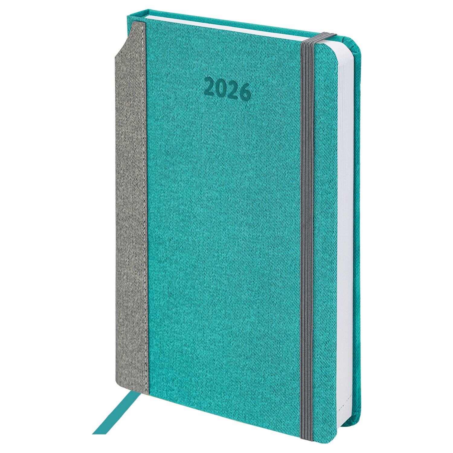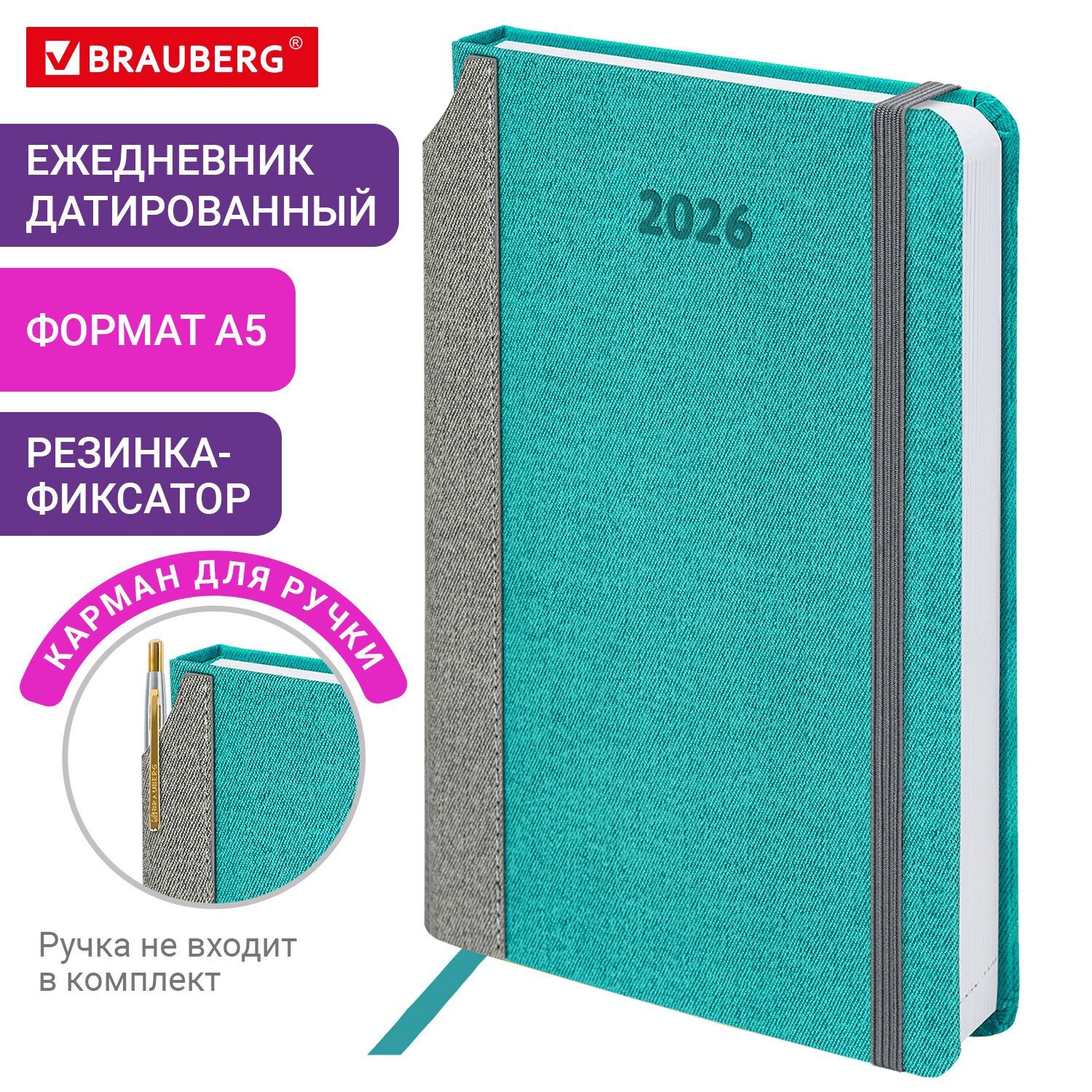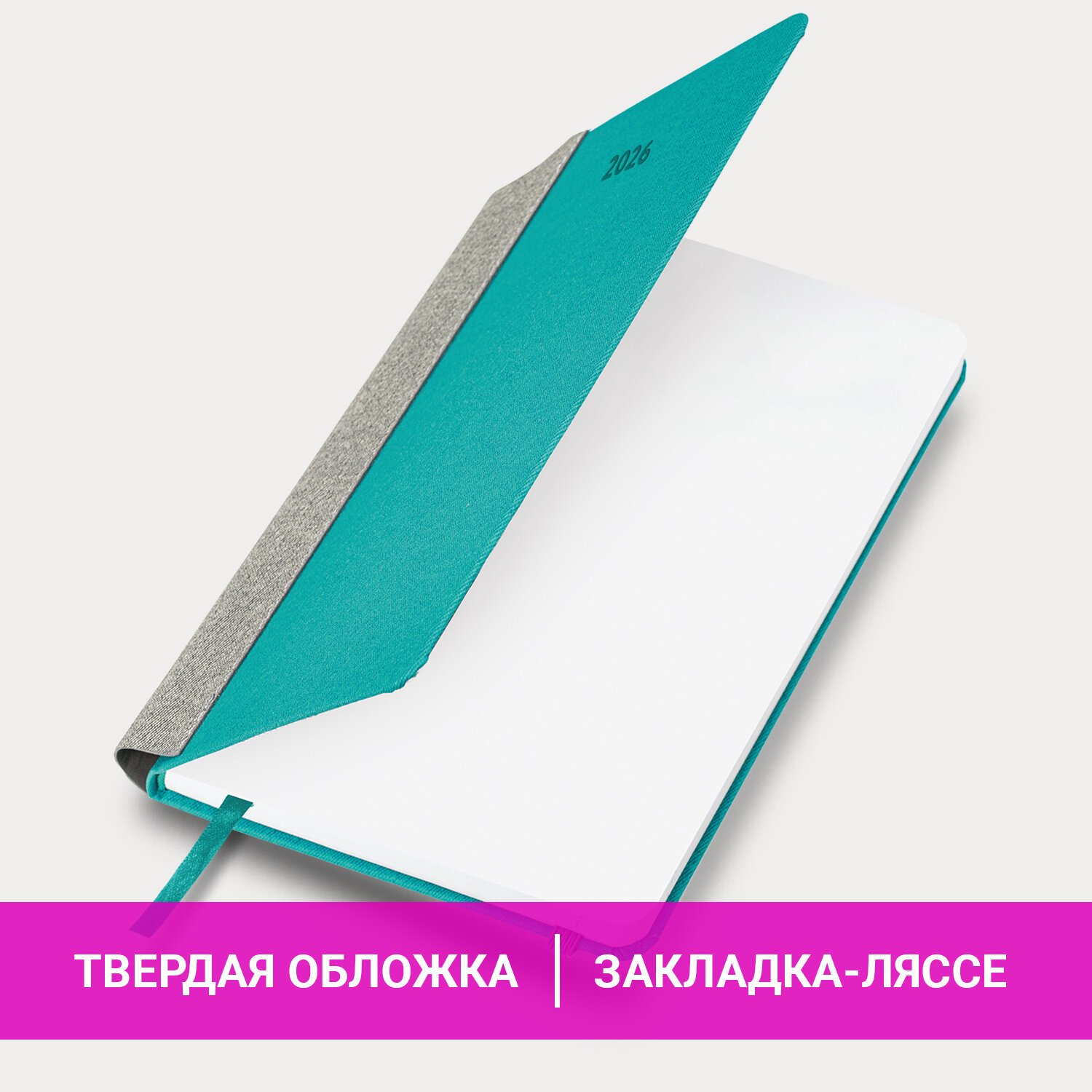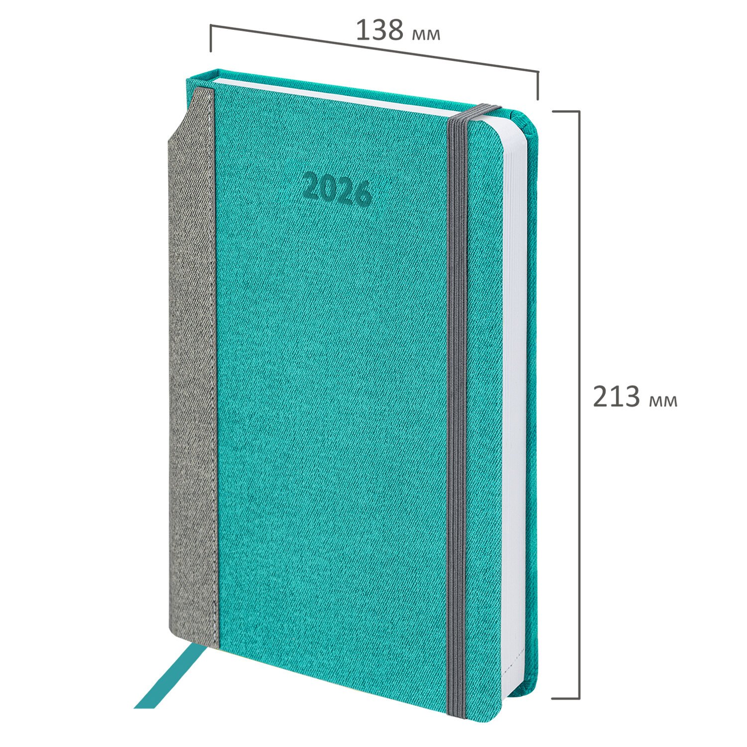 Ежедневник датированный 2026 А5 138x213мм BRAUBERG Mosaic, под кожу, держатель для ручки, бирюза, 117110
