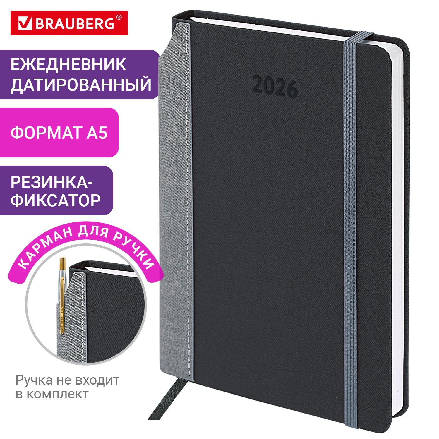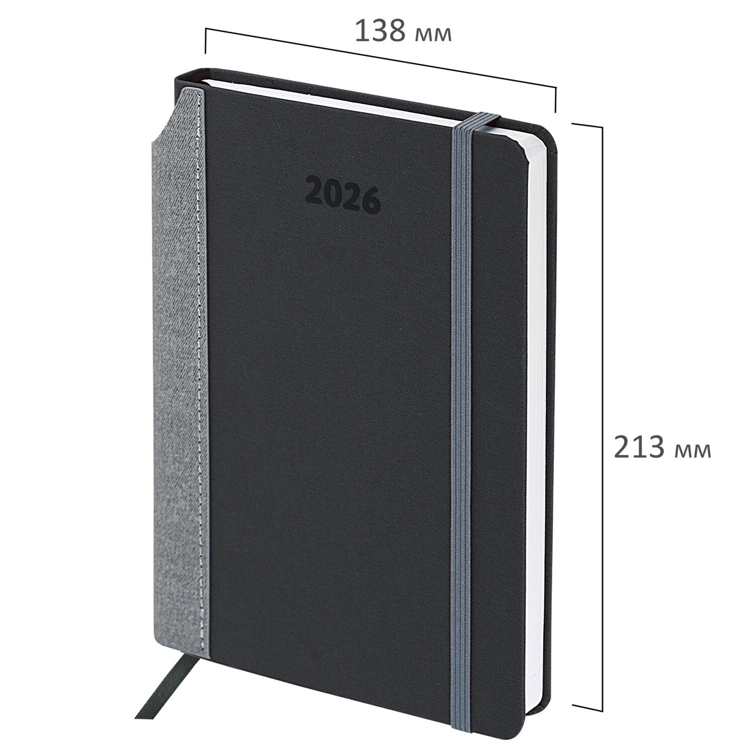 Ежедневник датированный 2026 А5 138x213мм BRAUBERG Mosaic, под кожу, карман для ручки, черный, 117114