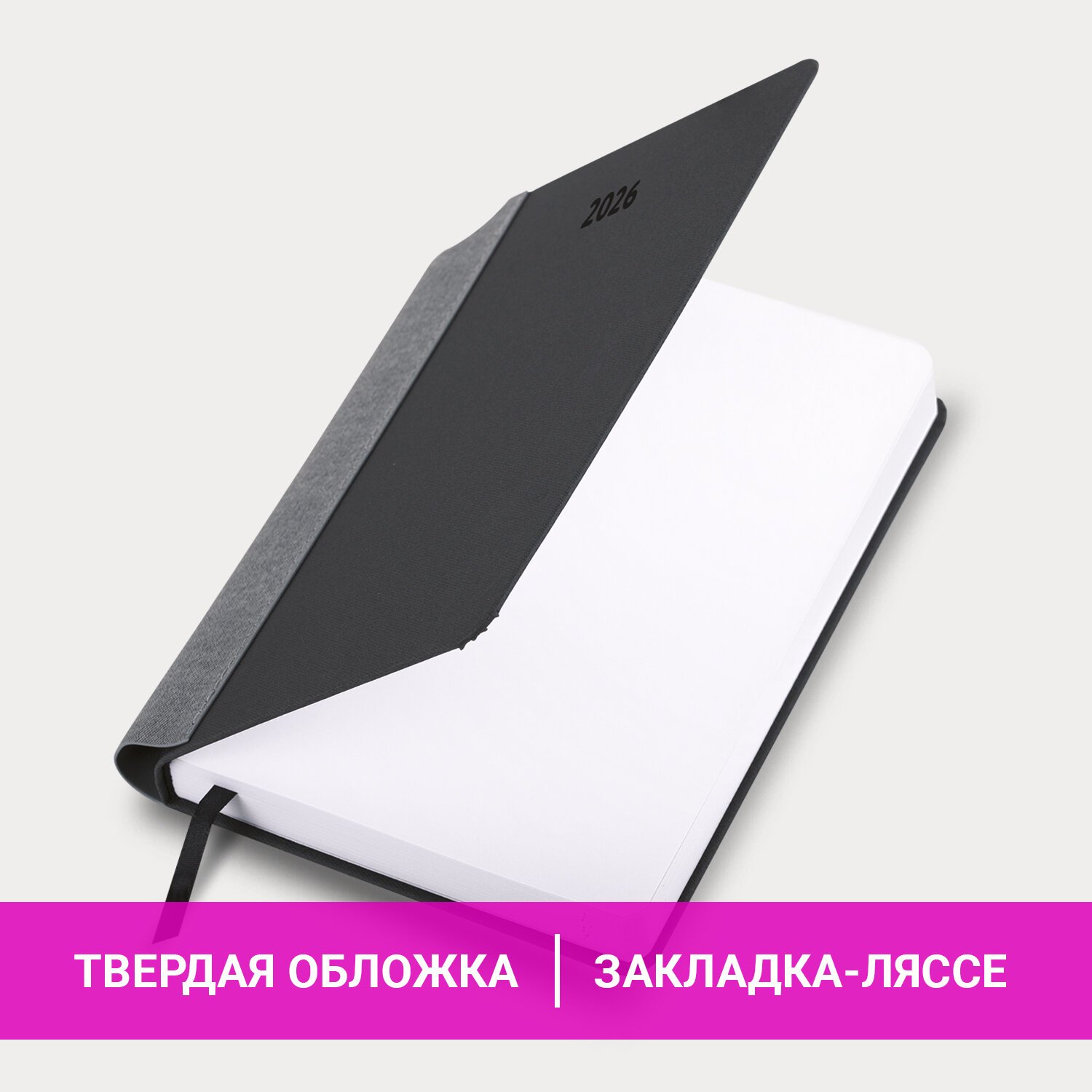 Ежедневник датированный 2026 А5 138x213мм BRAUBERG Cayman, под кожу, черный, 117047
