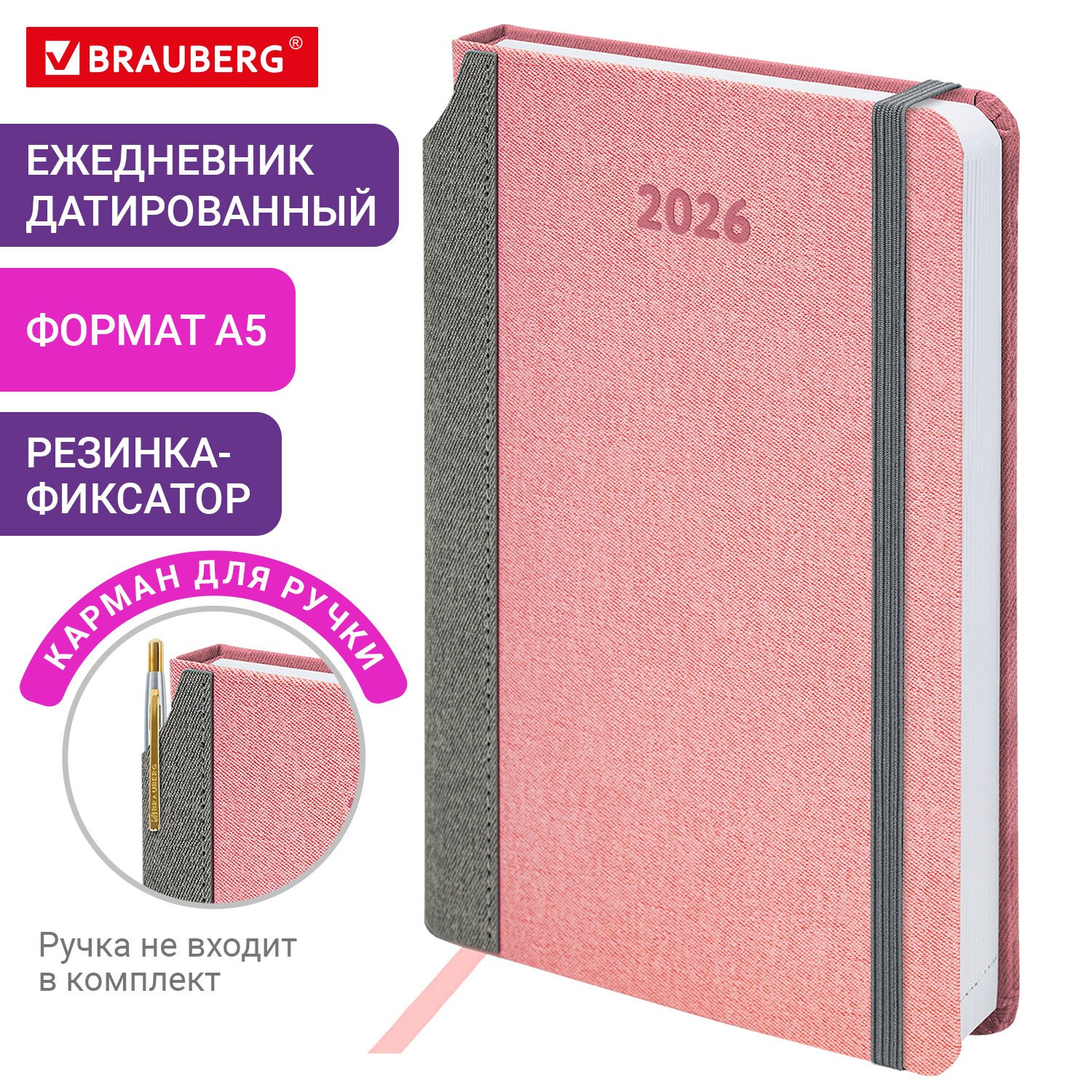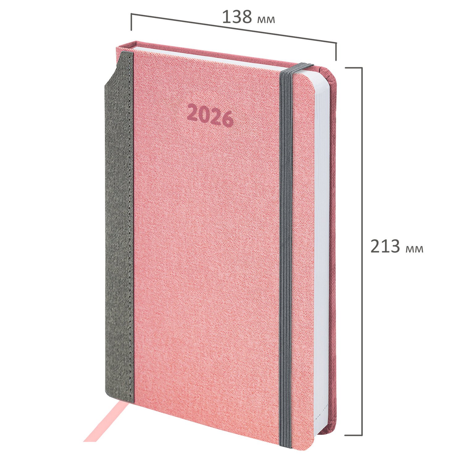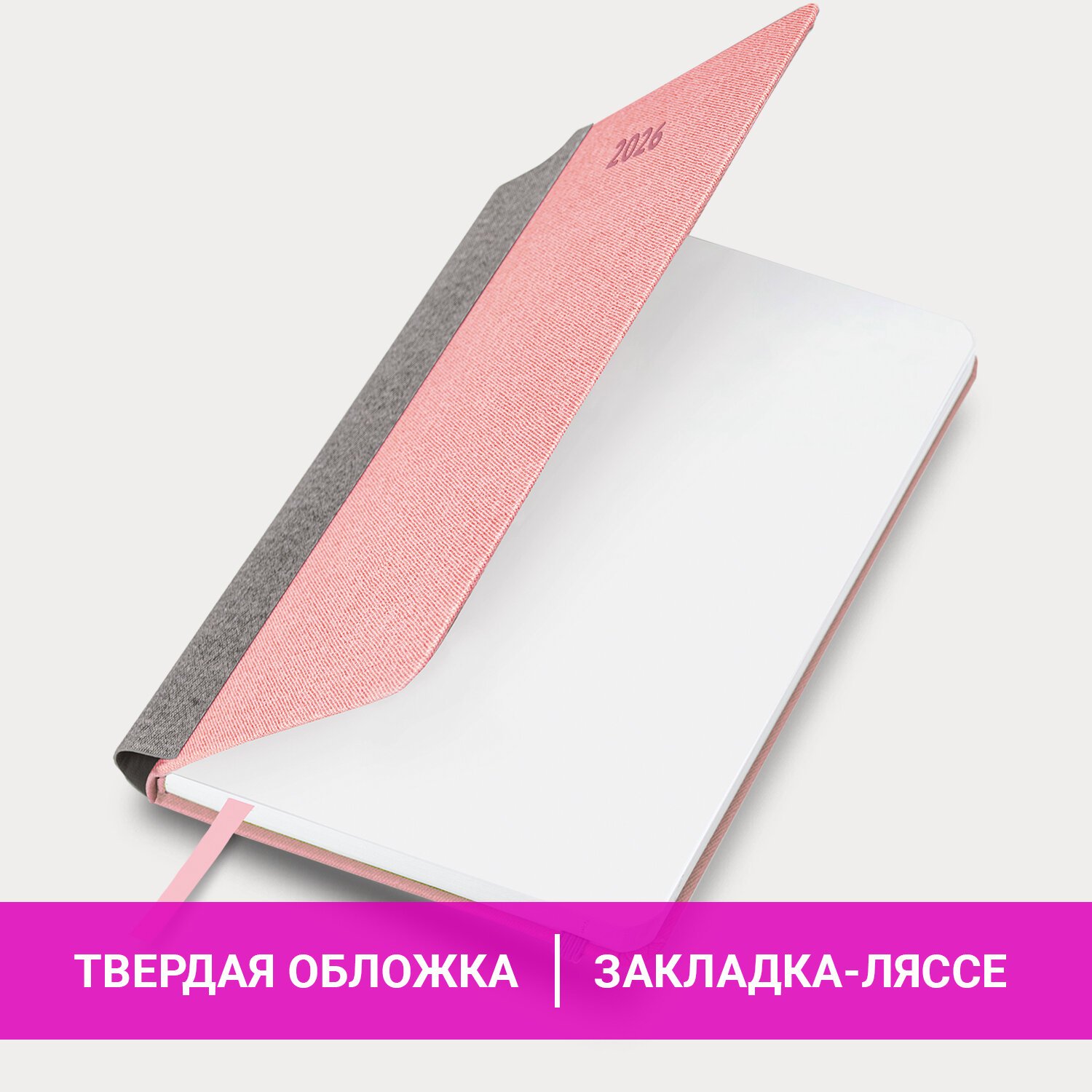 Ежедневник датированный 2026 А5 138x213мм BRAUBERG Mosaic, под кожу, карман для ручки, розовый, 117115