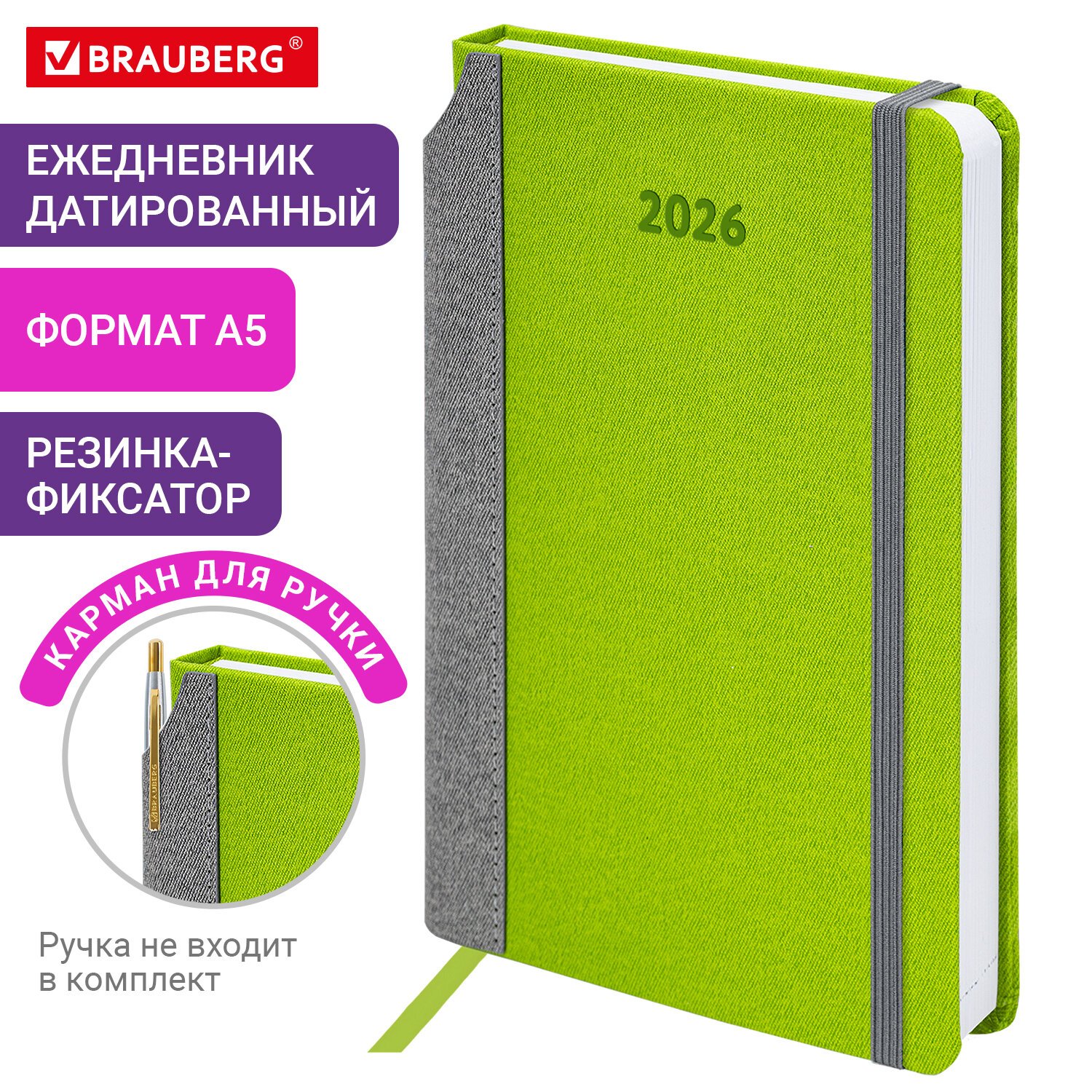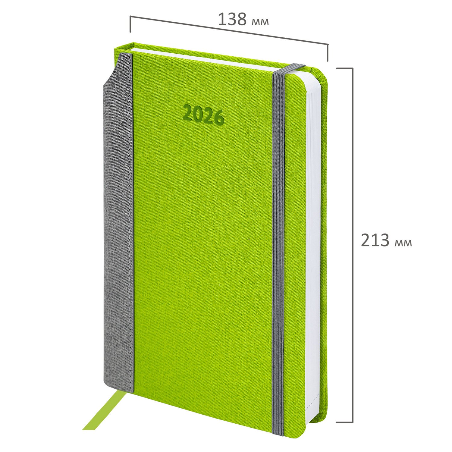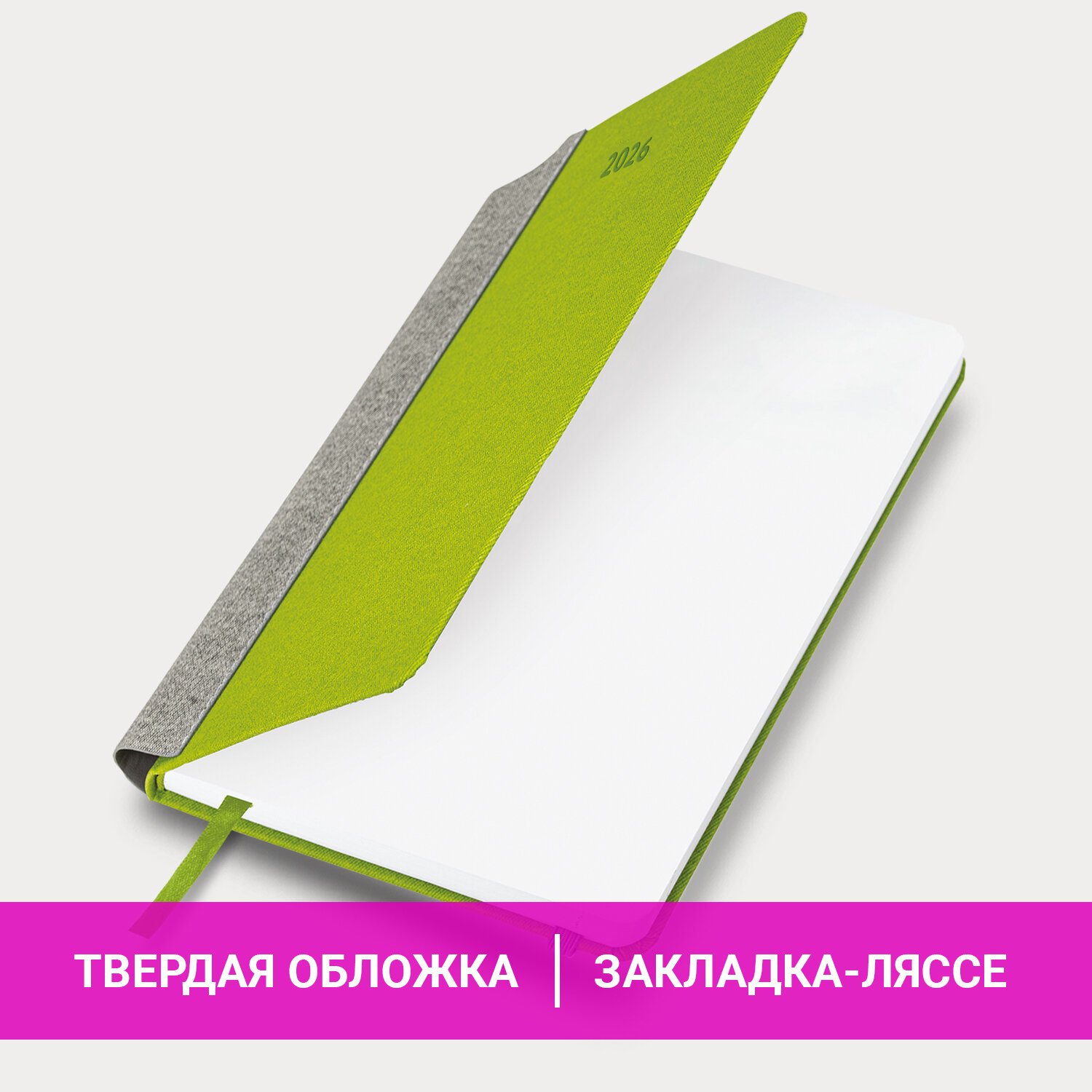 Ежедневник датированный 2026 А5 138x213мм BRAUBERG Mosaic, под кожу, карман для ручки, зеленый, 117111