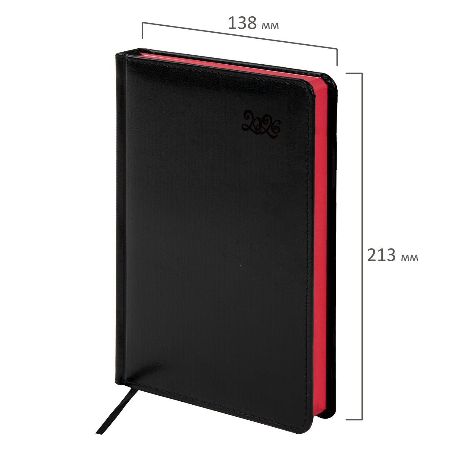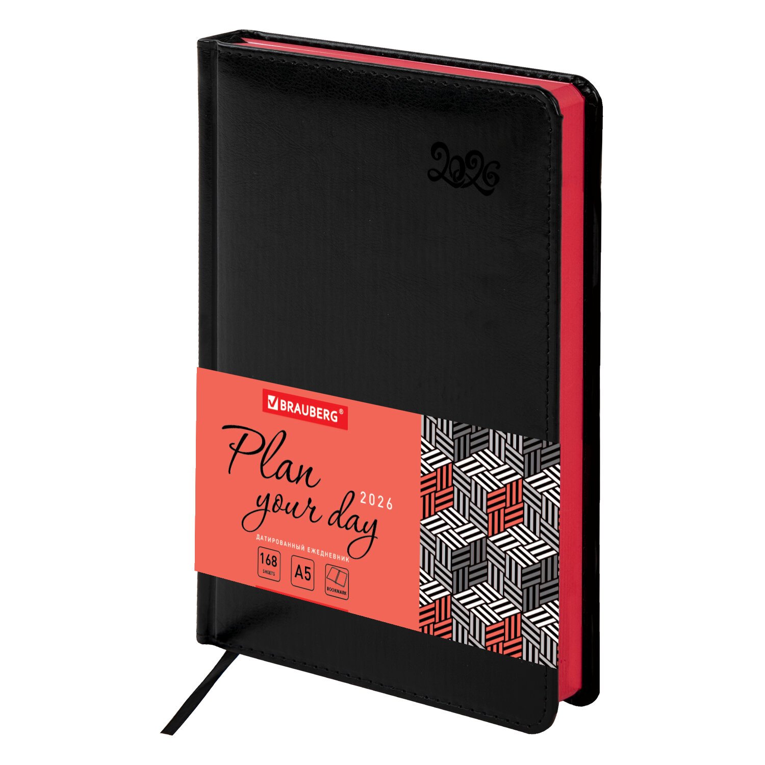 Ежедневник датированный 2026, А5, 138х213 мм, BRAUBERG "Impression", под кожу, черный, 117510