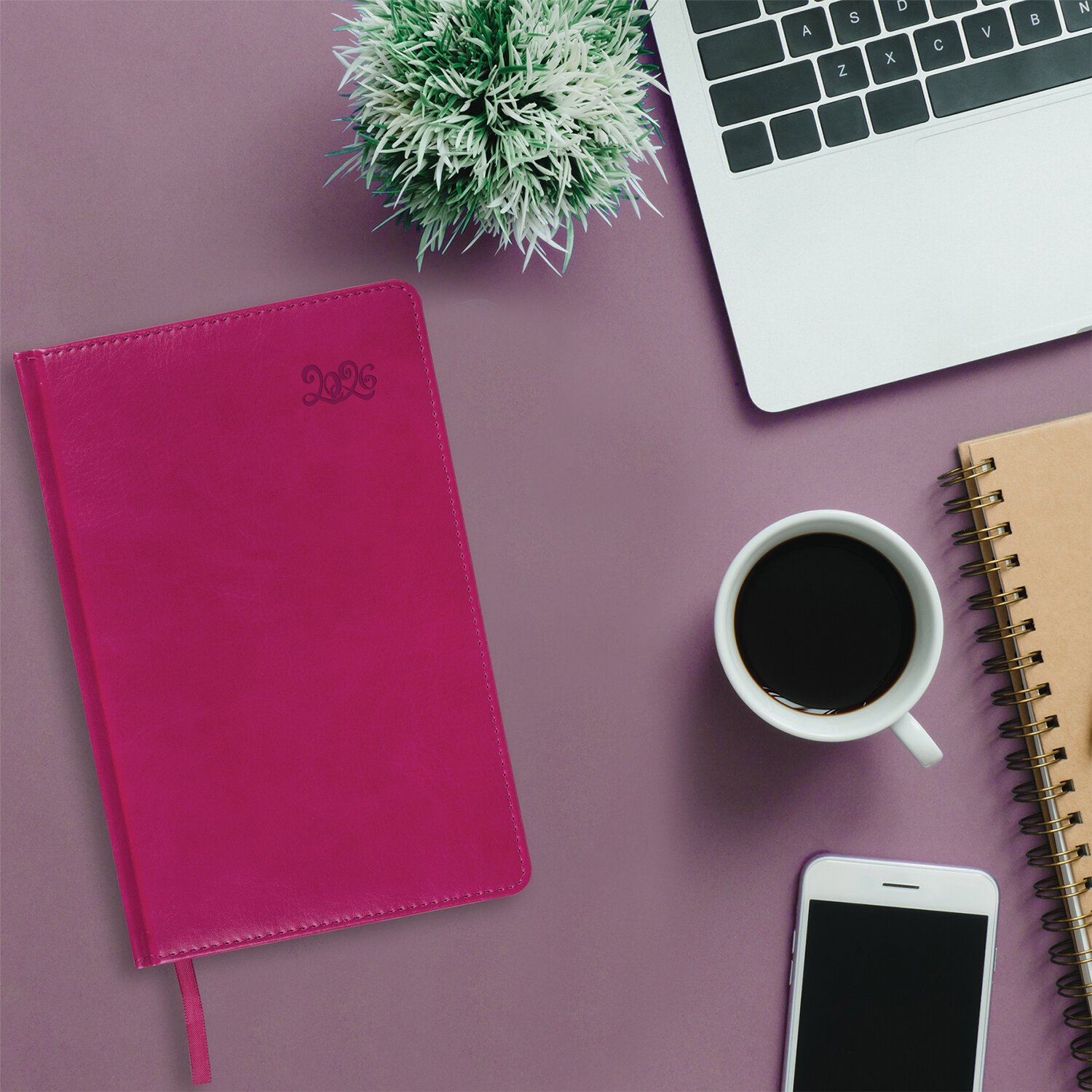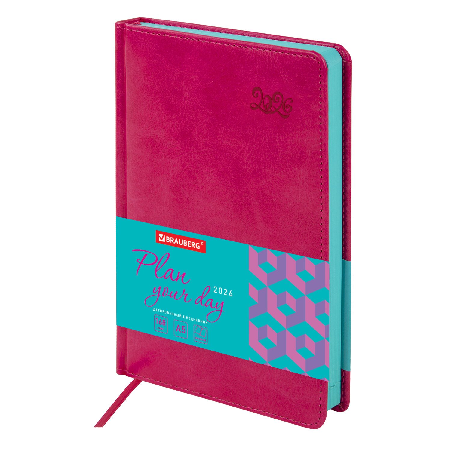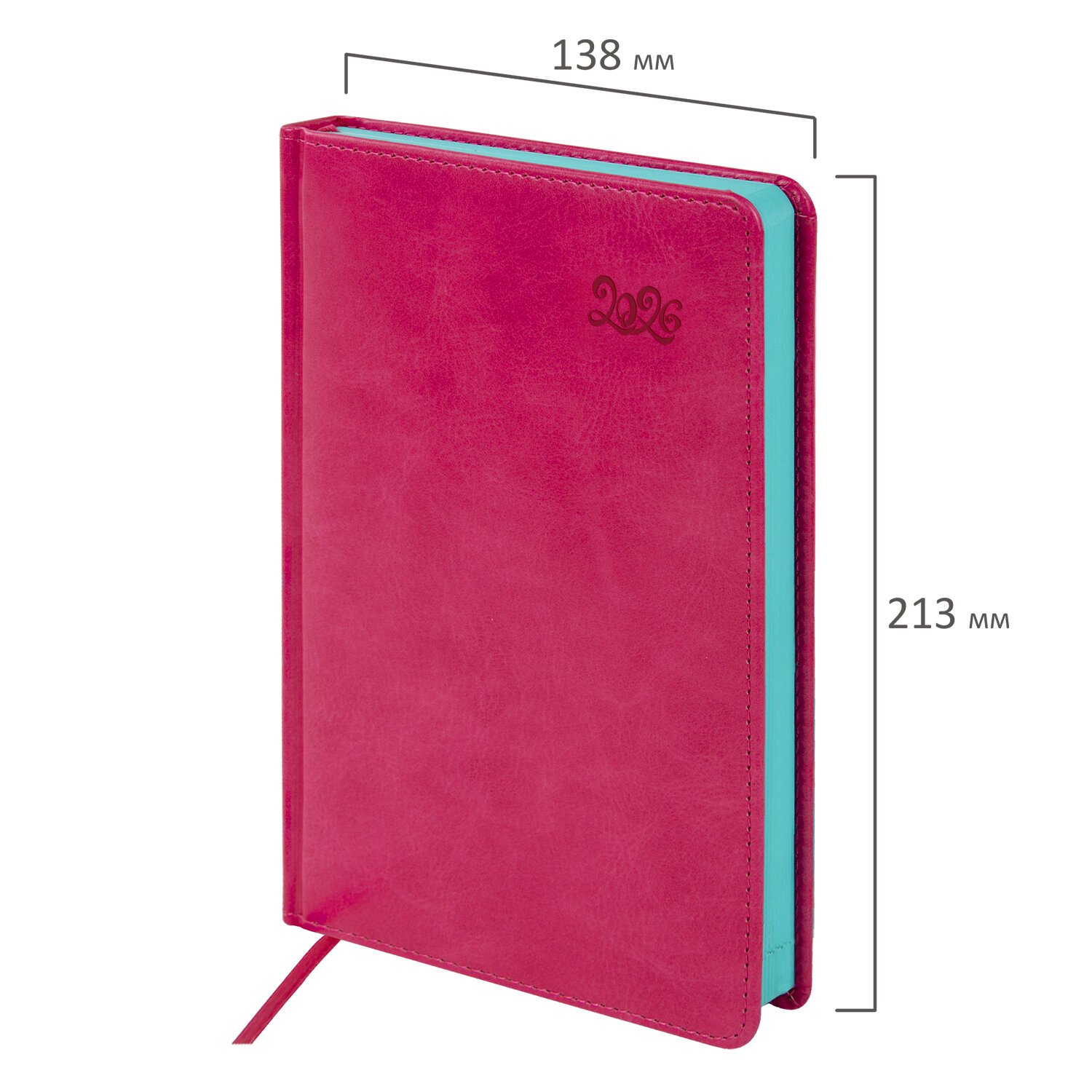 Ежедневник датированный 2026 А5 138x213мм BRAUBERG Rainbow, под кожу, розовый, 117078