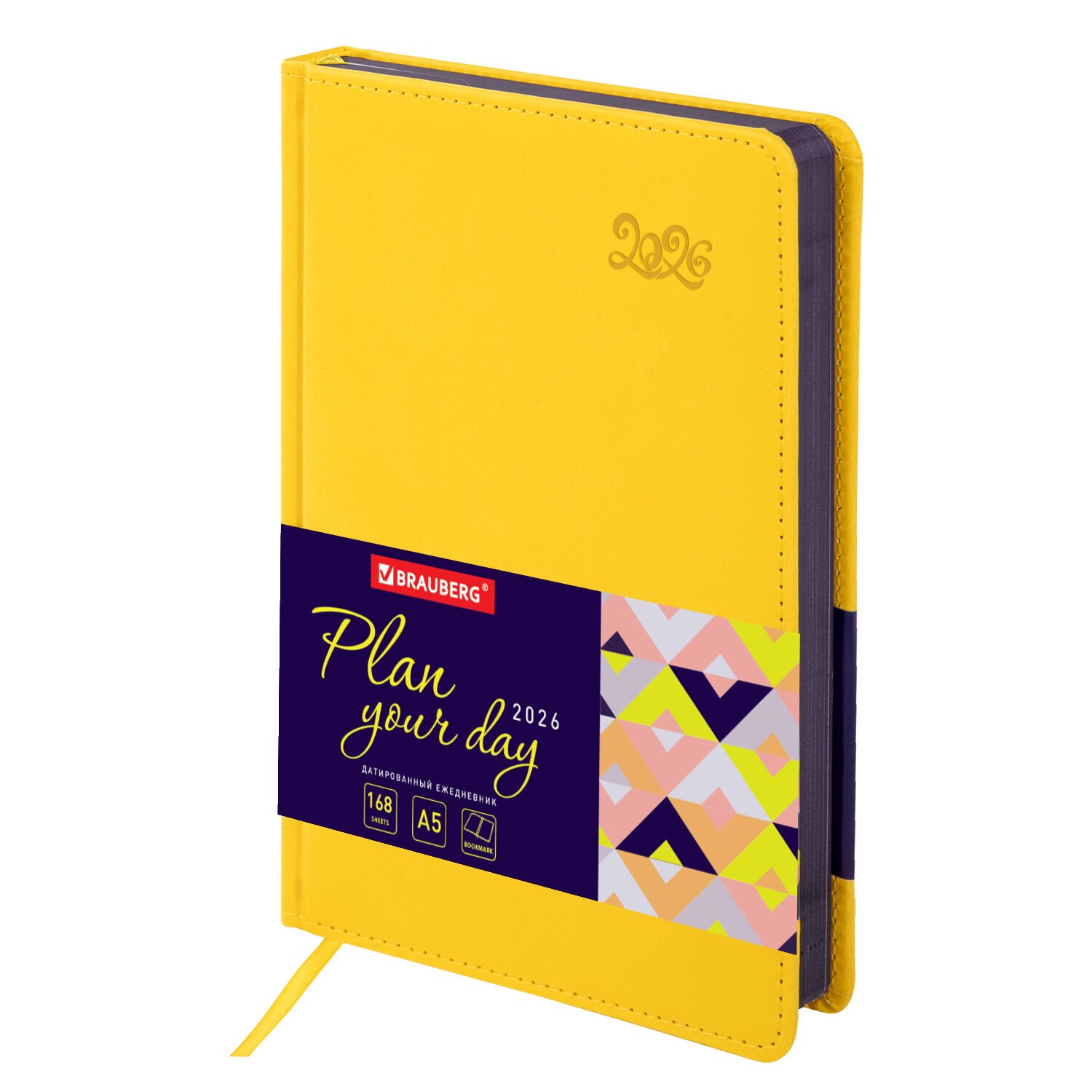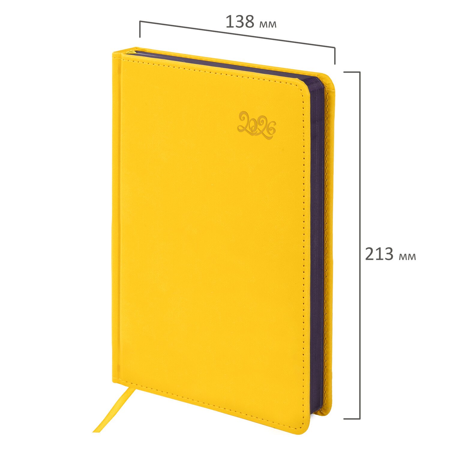 Ежедневник датированный 2026 А5 138x213мм BRAUBERG Rainbow, под кожу, желтый, 117082