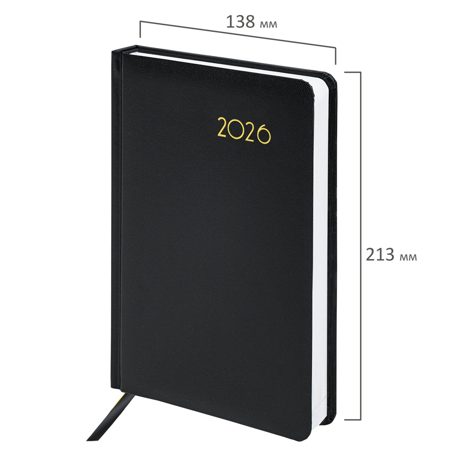 Ежедневник датированный 2026 А5 138x213мм BRAUBERG Select, балакрон, черный, 117086