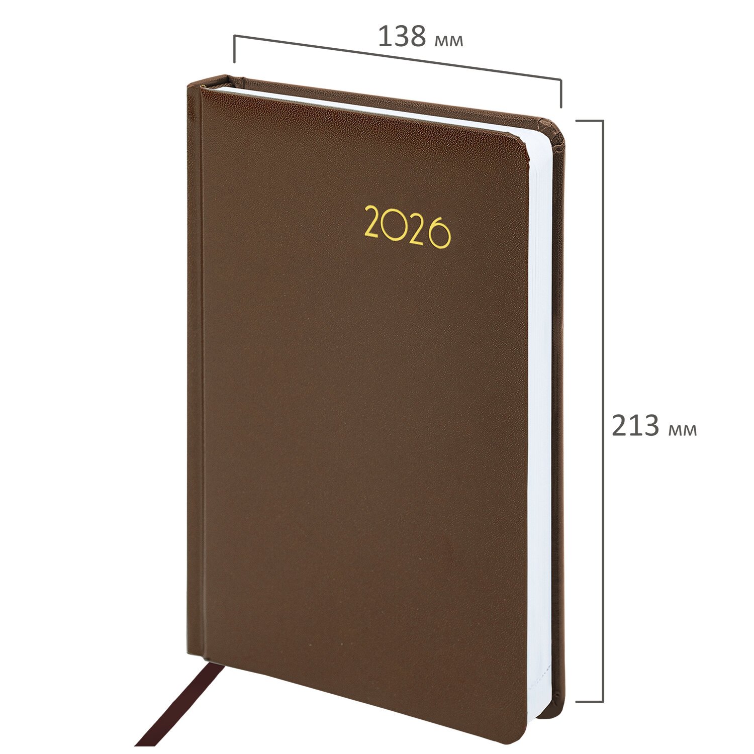 Ежедневник датированный 2026 А5 138x213мм BRAUBERG Select, балакрон, коричневый, 117087