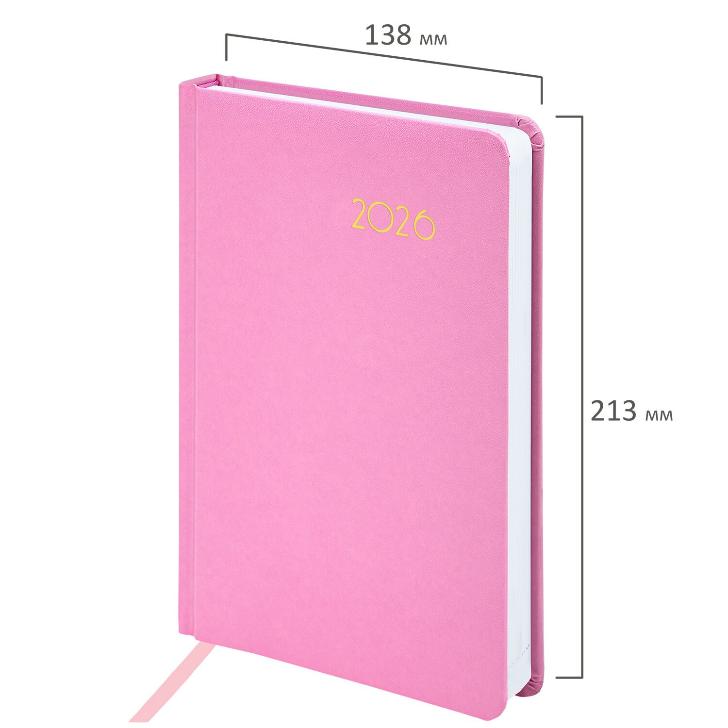 Ежедневник датированный 2026 А5 138x213мм BRAUBERG Select, балакрон, розовый, 117089
