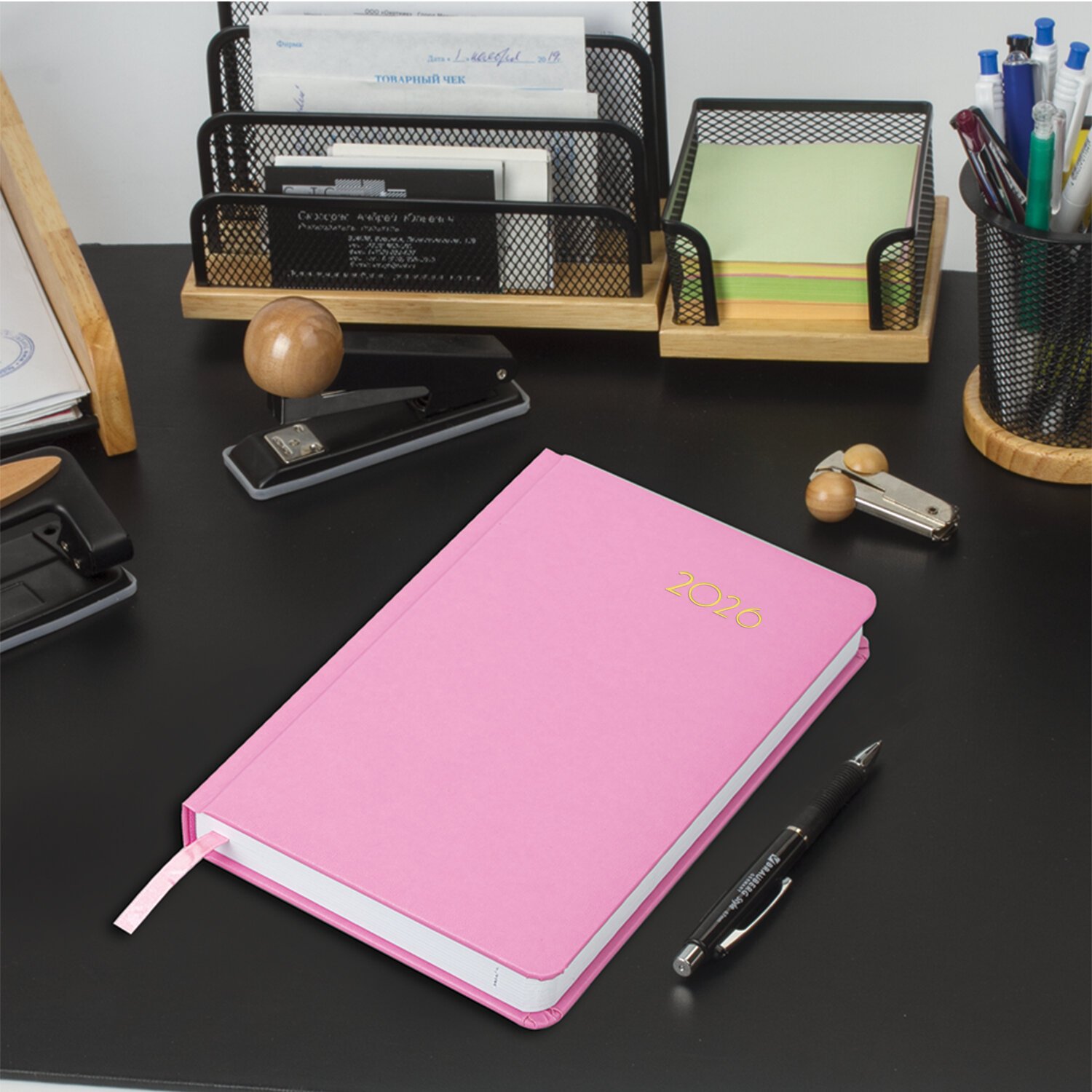 Ежедневник датированный 2026 А5 138x213мм BRAUBERG Profile, балакрон, светло-розовый, 117075