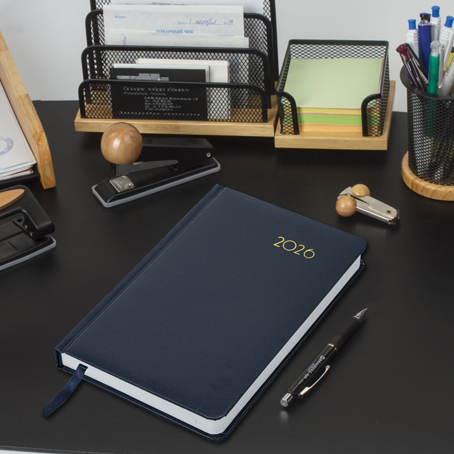Ежедневник датированный 2026 А5 138x213мм BRAUBERG Select, балакрон, темно-синий, 117085