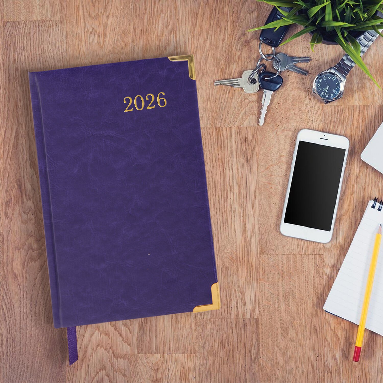 Ежедневник датированный 2026 А5 138x213мм BRAUBERG Senator, под кожу, фиолетовый, 117093
