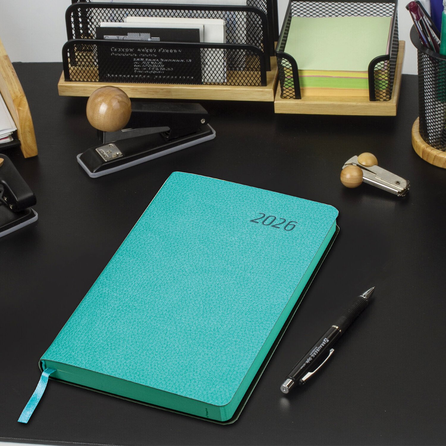 Ежедневник датированный 2026 А5 138x213мм BRAUBERG Stylish, под кожу гибкий, бирюзовый, 117098