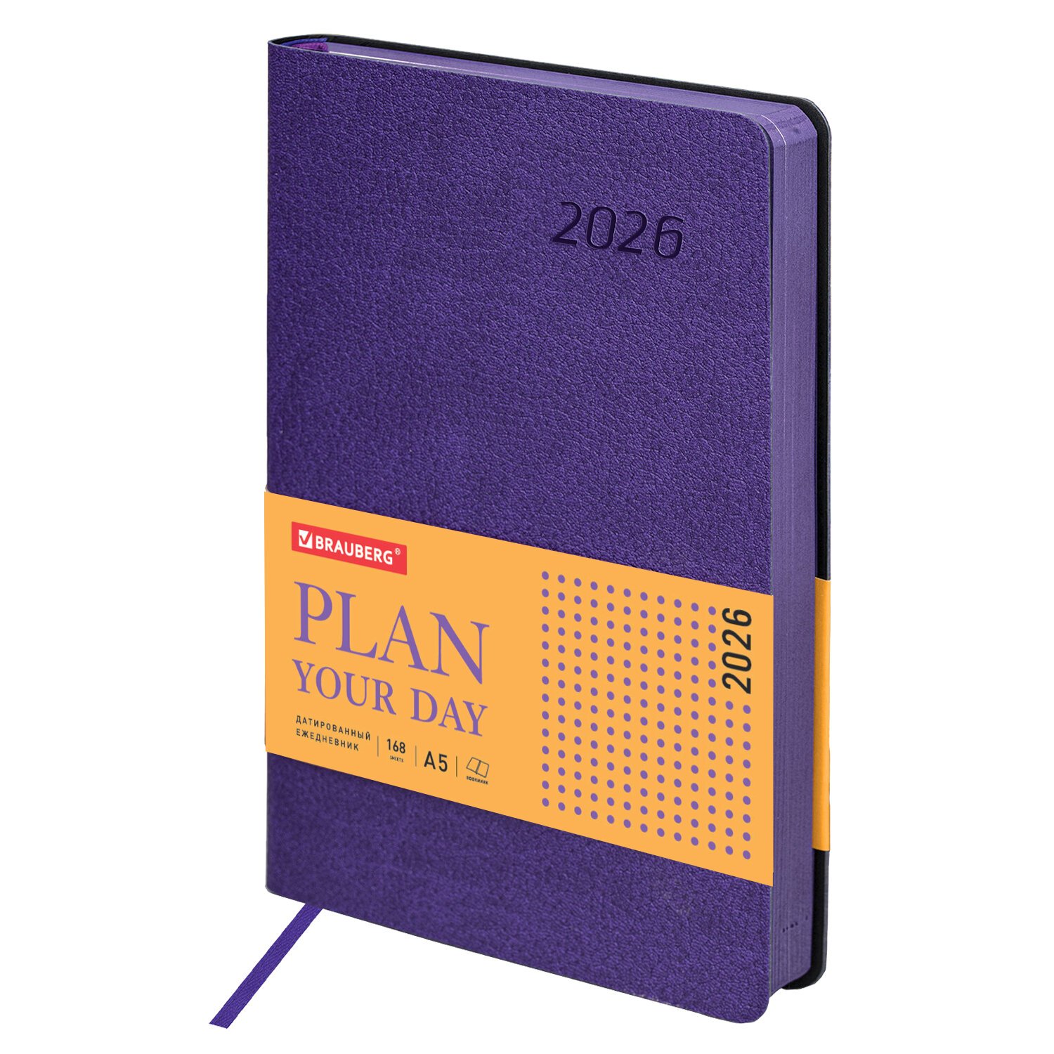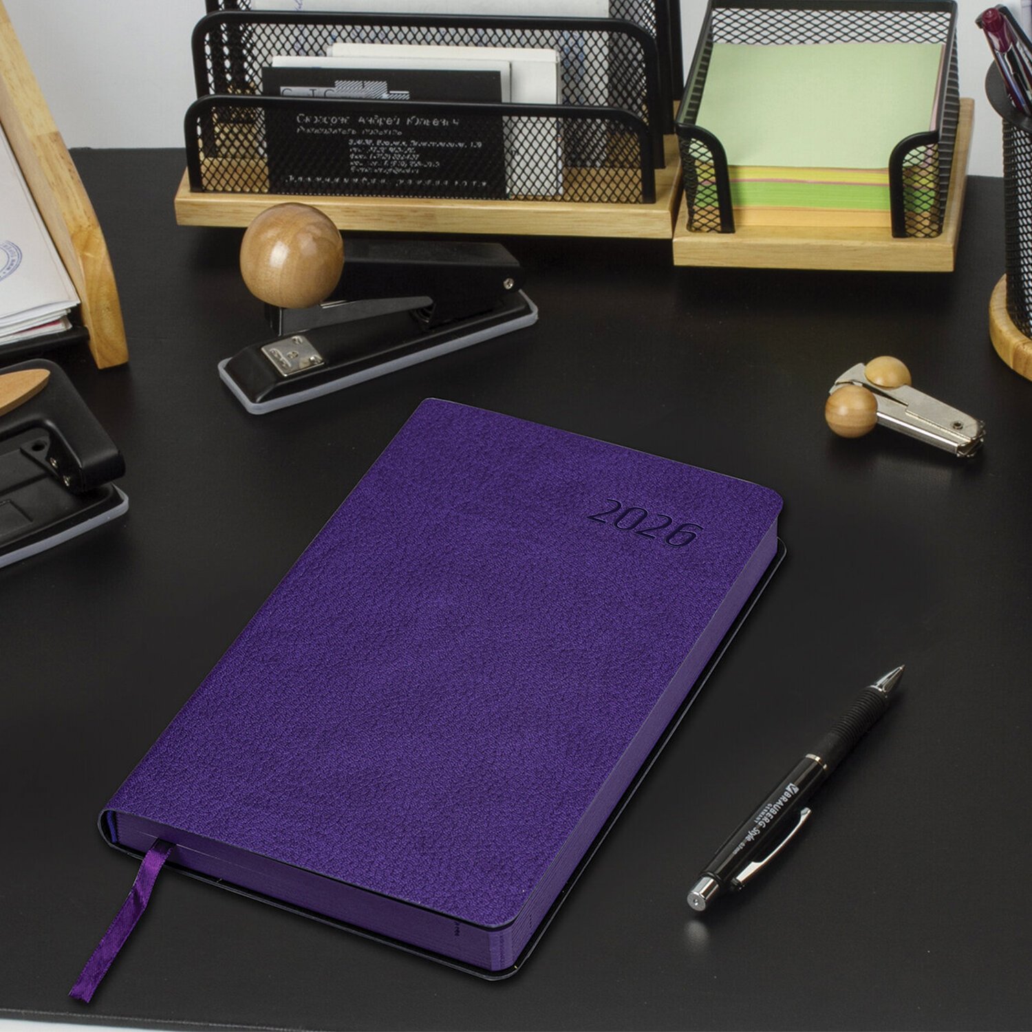 Ежедневник датированный 2026 А5 138x213мм BRAUBERG Stylish, под кожу гибкий, фиолетовый, 117100