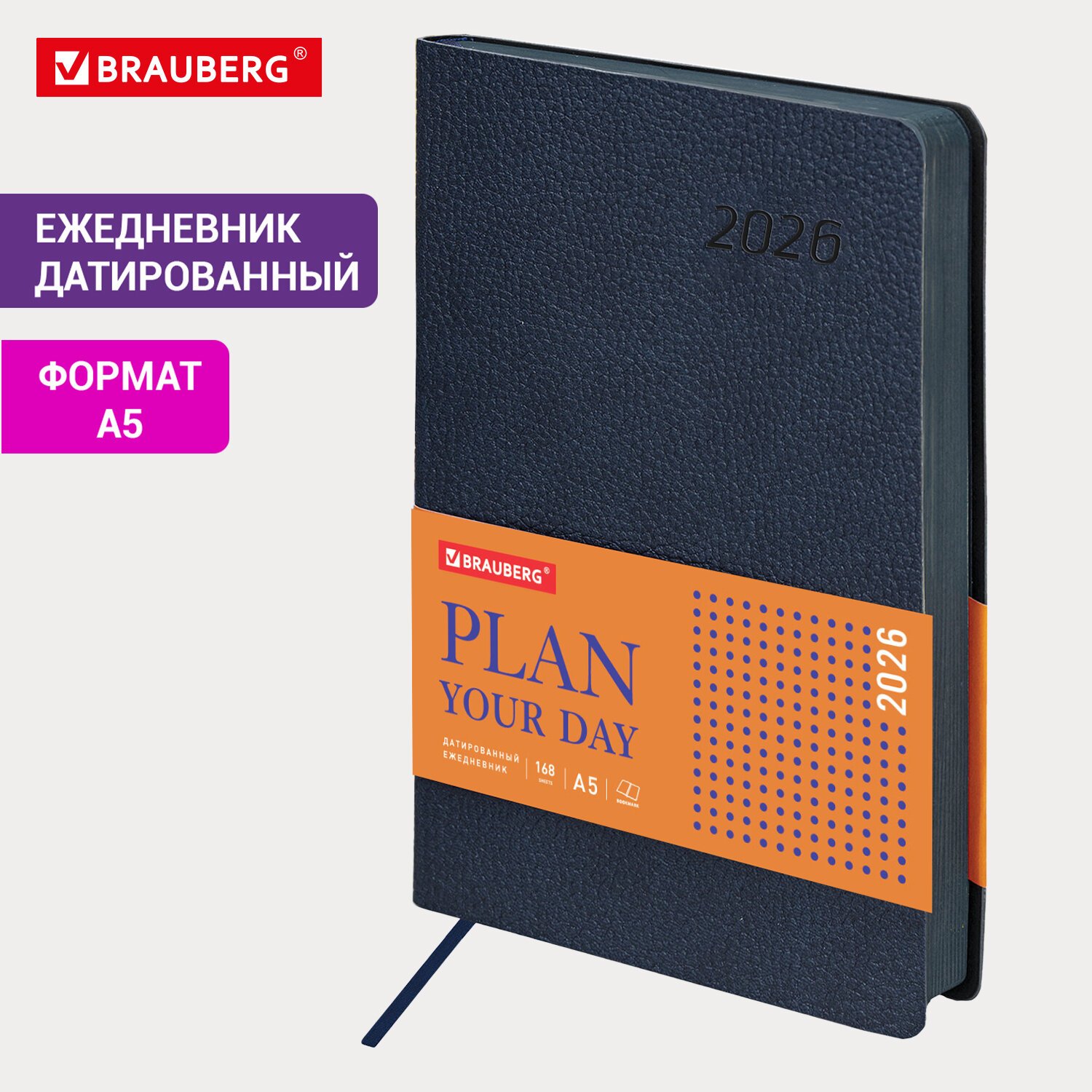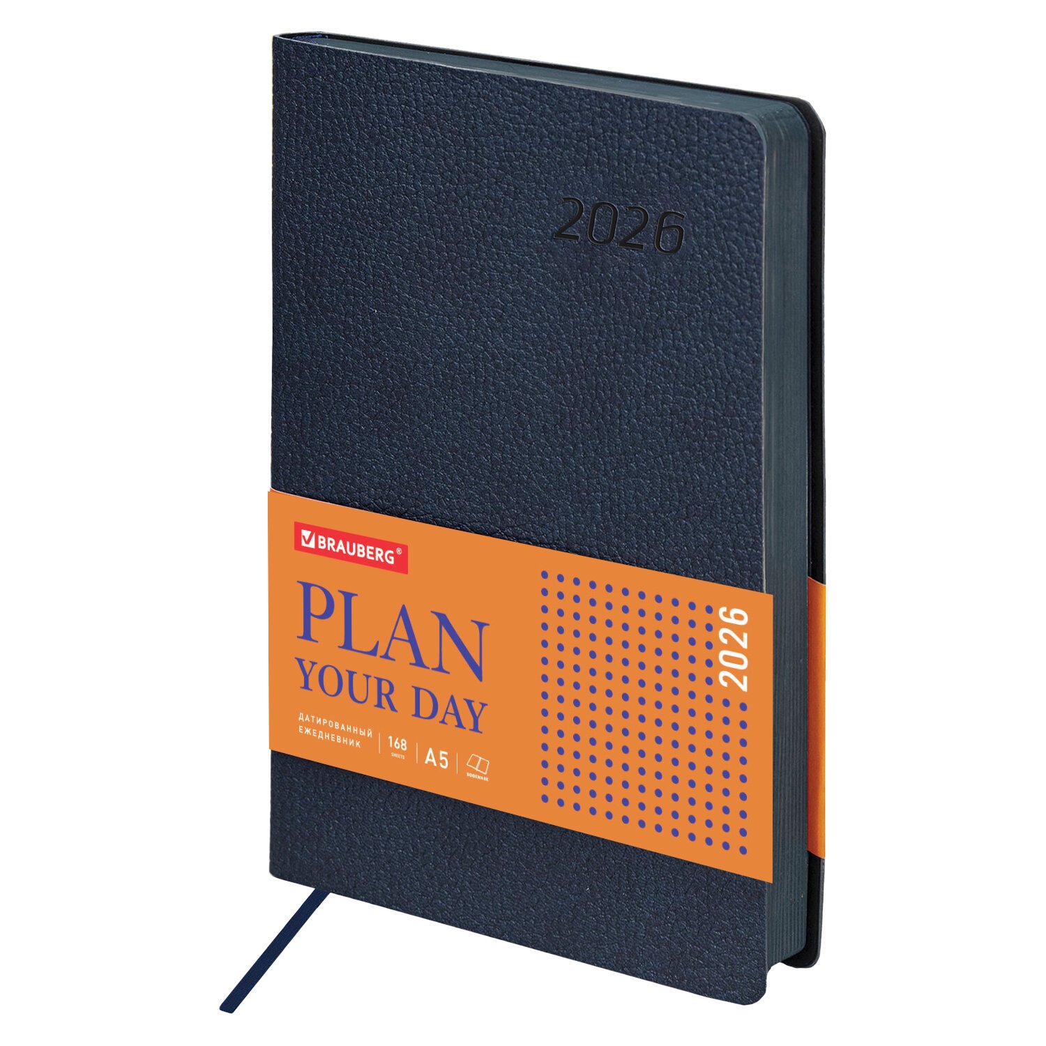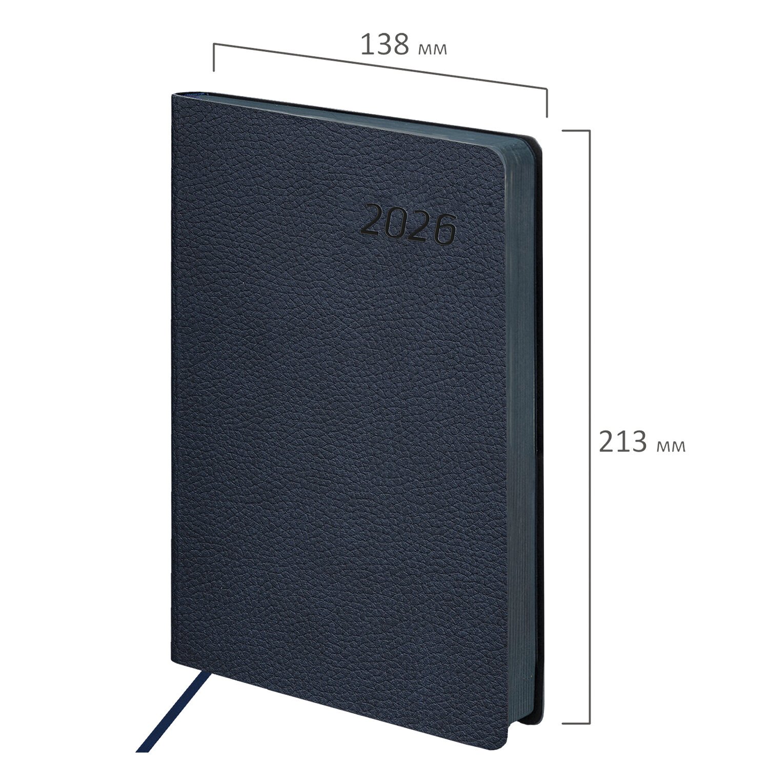 Ежедневник датированный 2026 А5 138x213мм BRAUBERG Stylish, под кожу гибкий, темно-синий, 117096