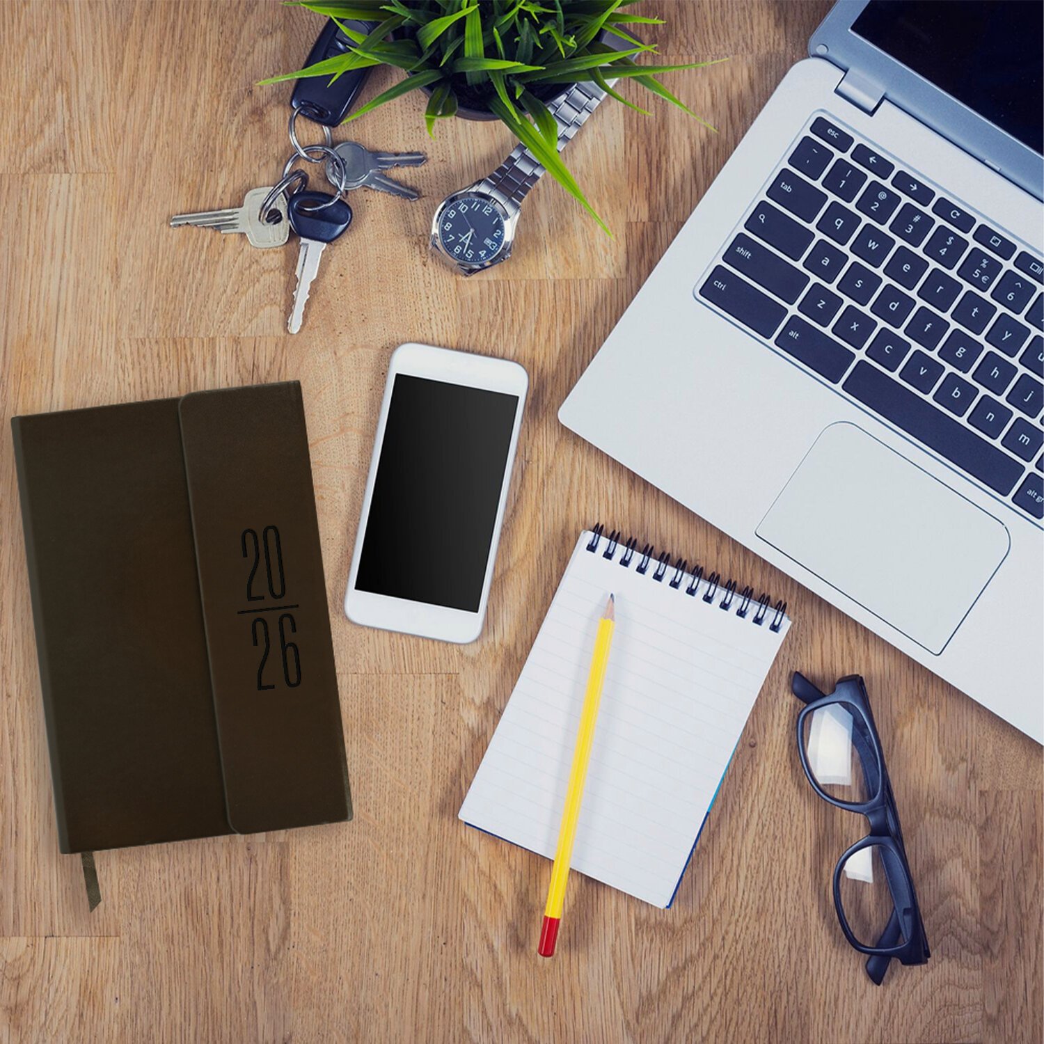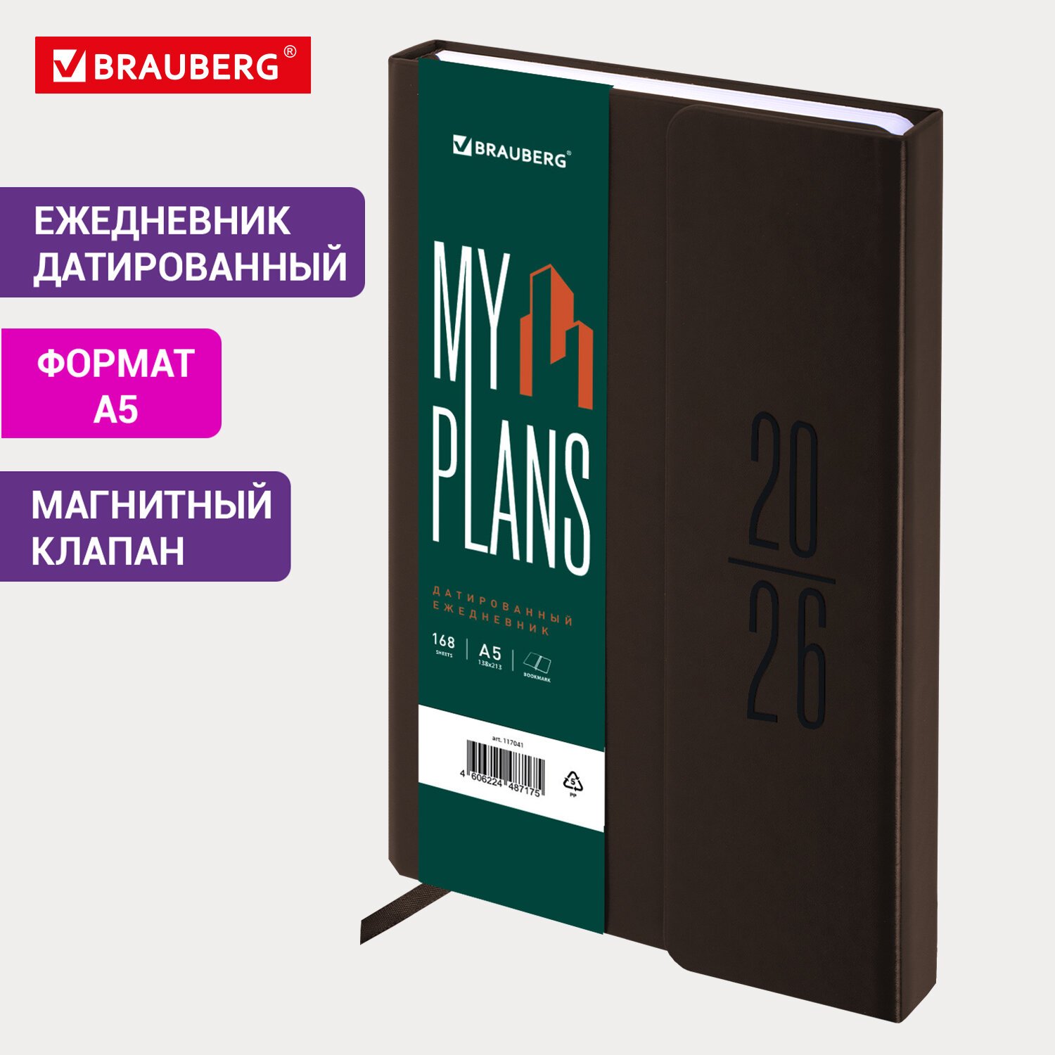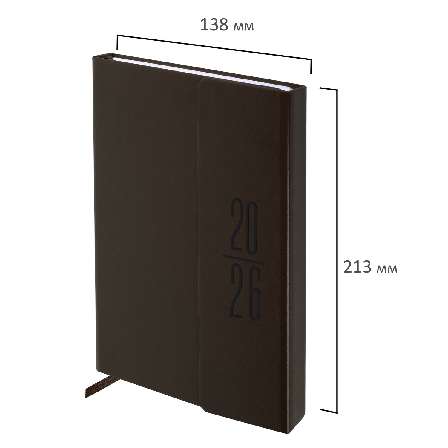 Ежедневник датированный 2026 А5 138x213мм BRAUBERG Towny, под кожу, клапан, коричневый, 117041