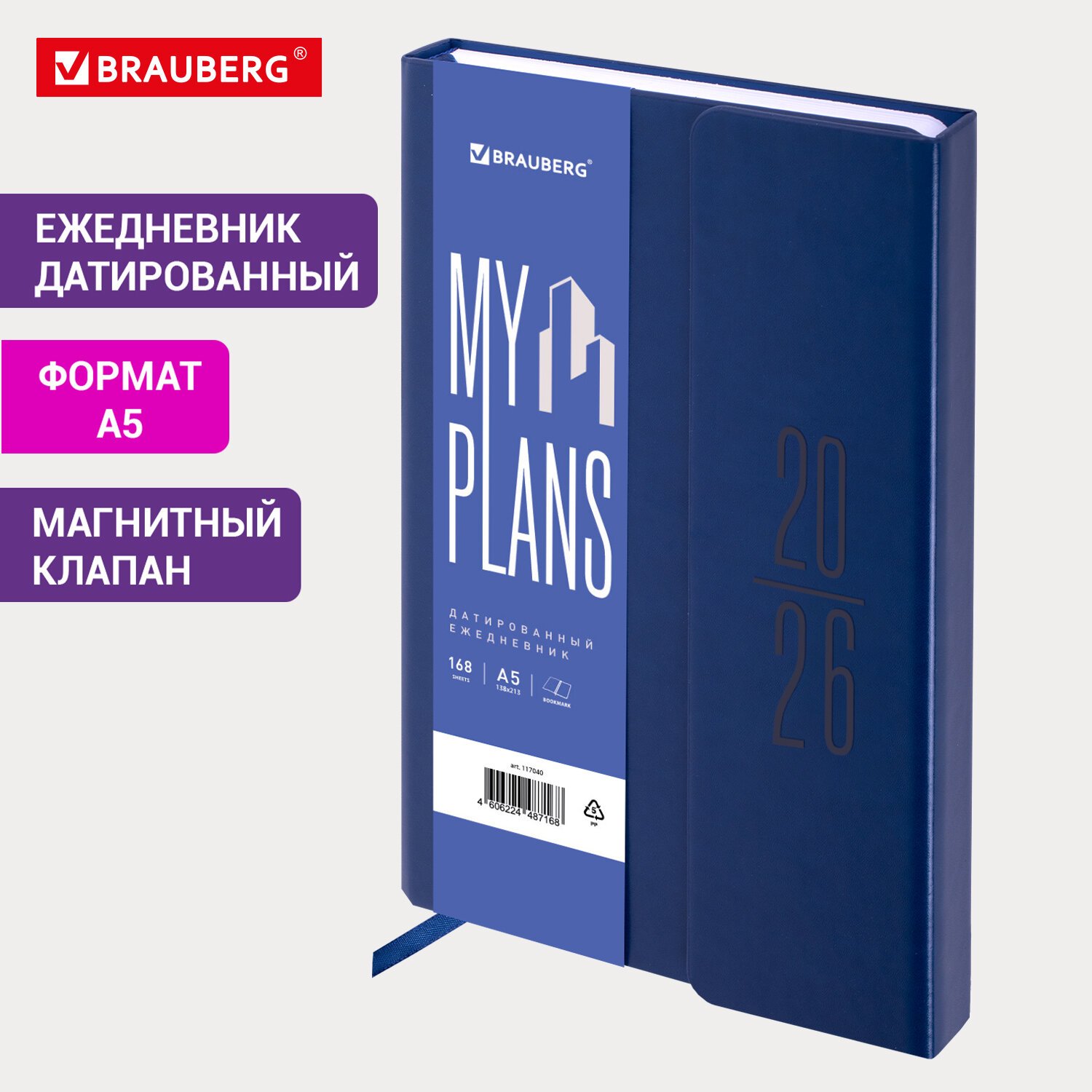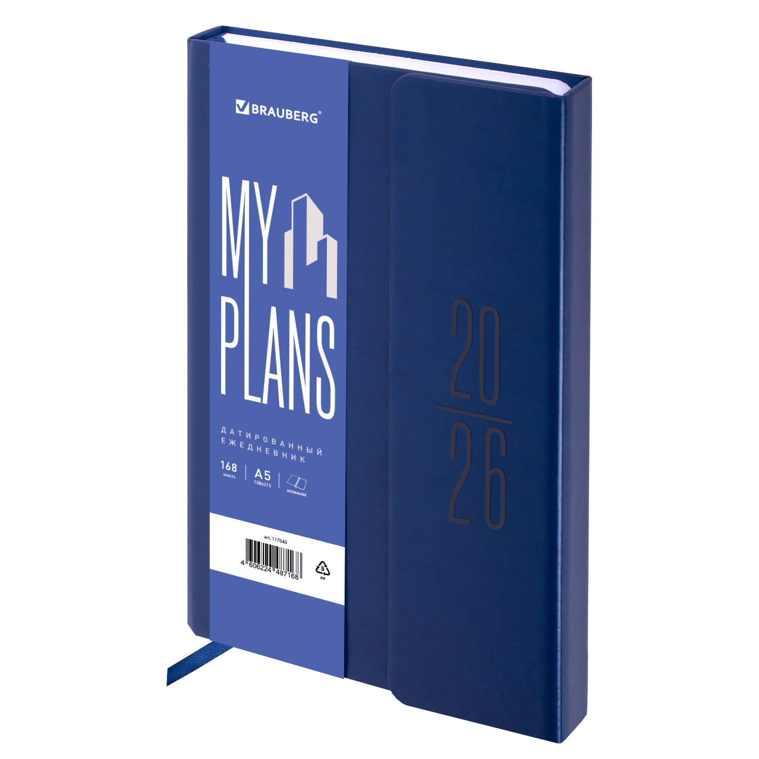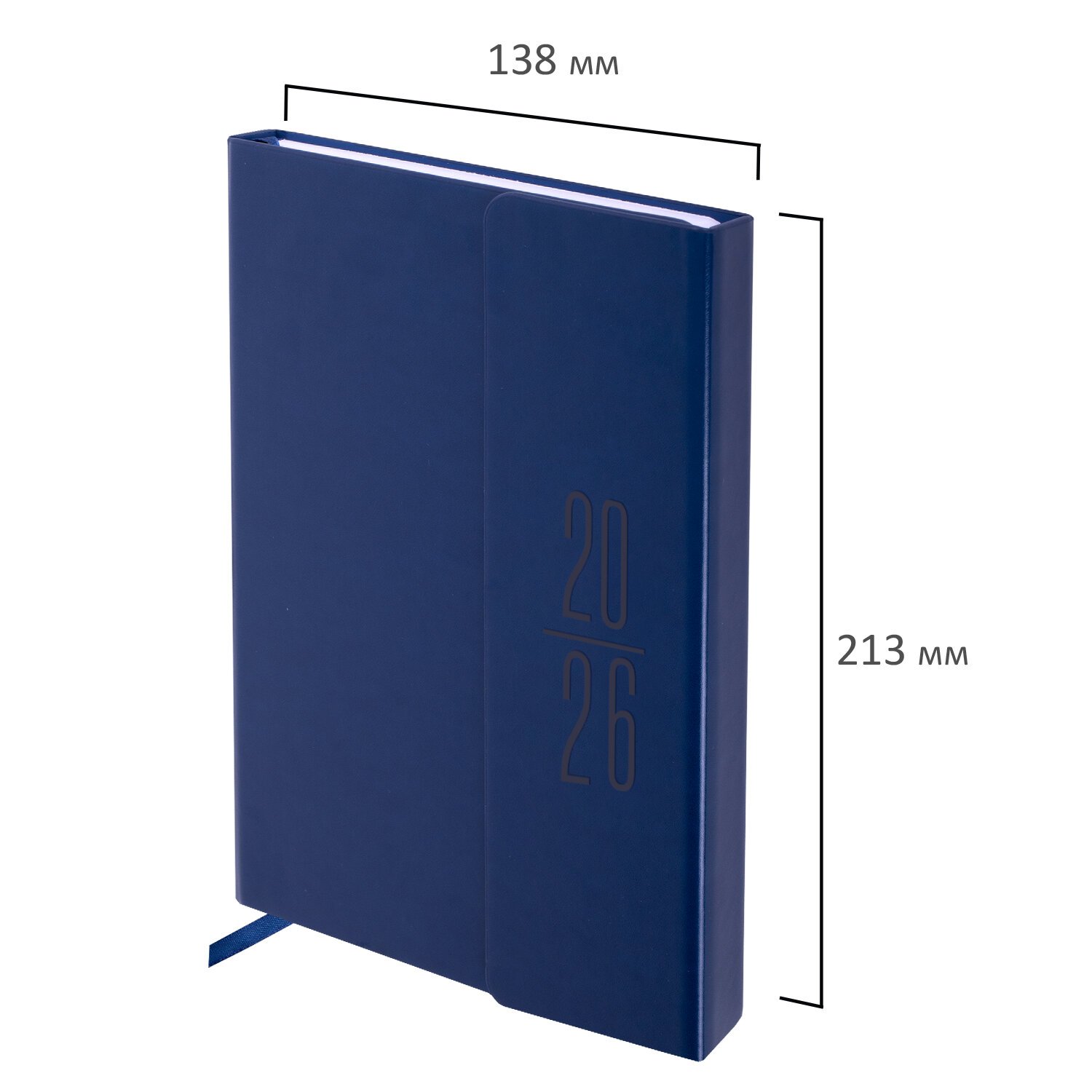 Ежедневник датированный 2026 А5 138x213мм BRAUBERG Towny, под кожу, клапан, синий, 117040