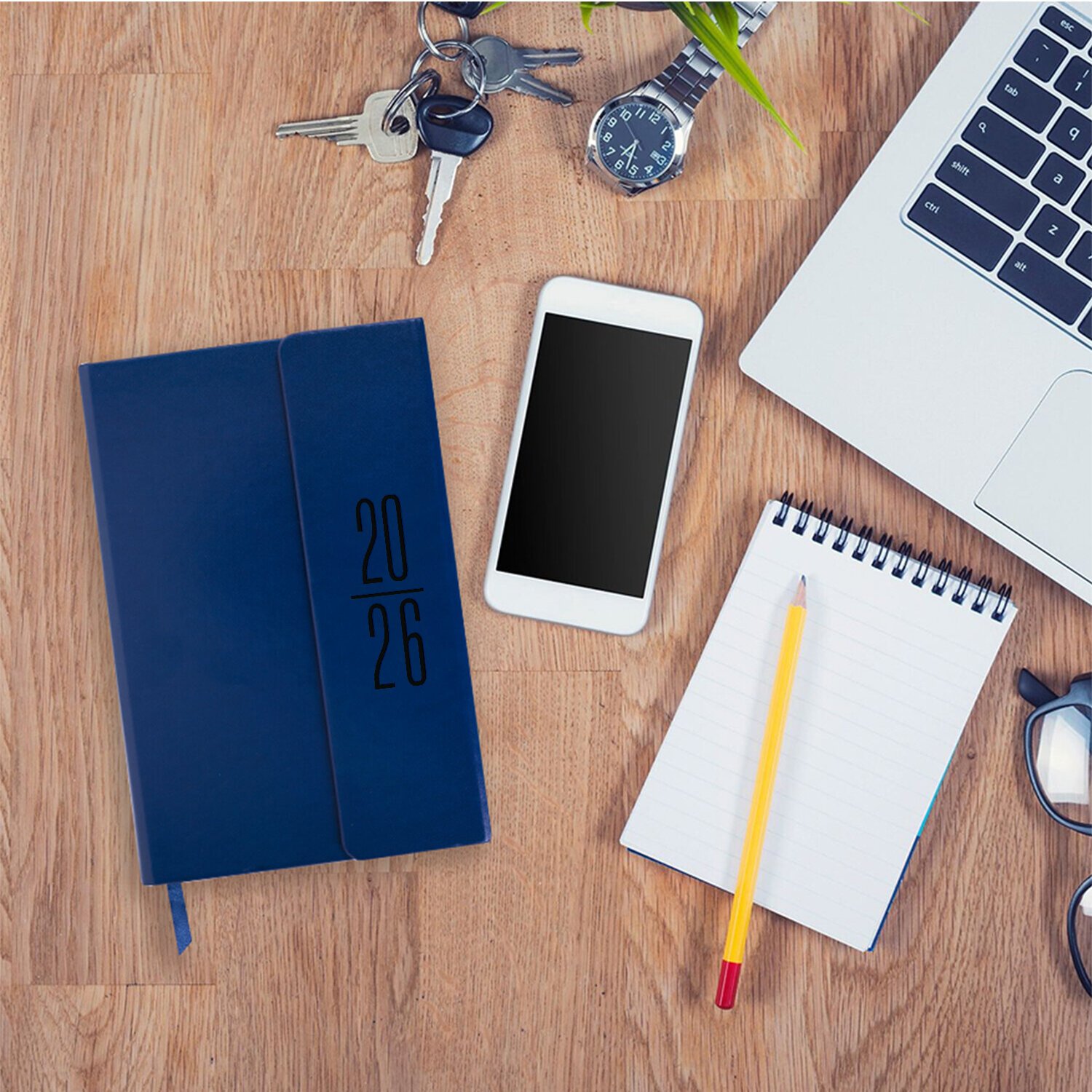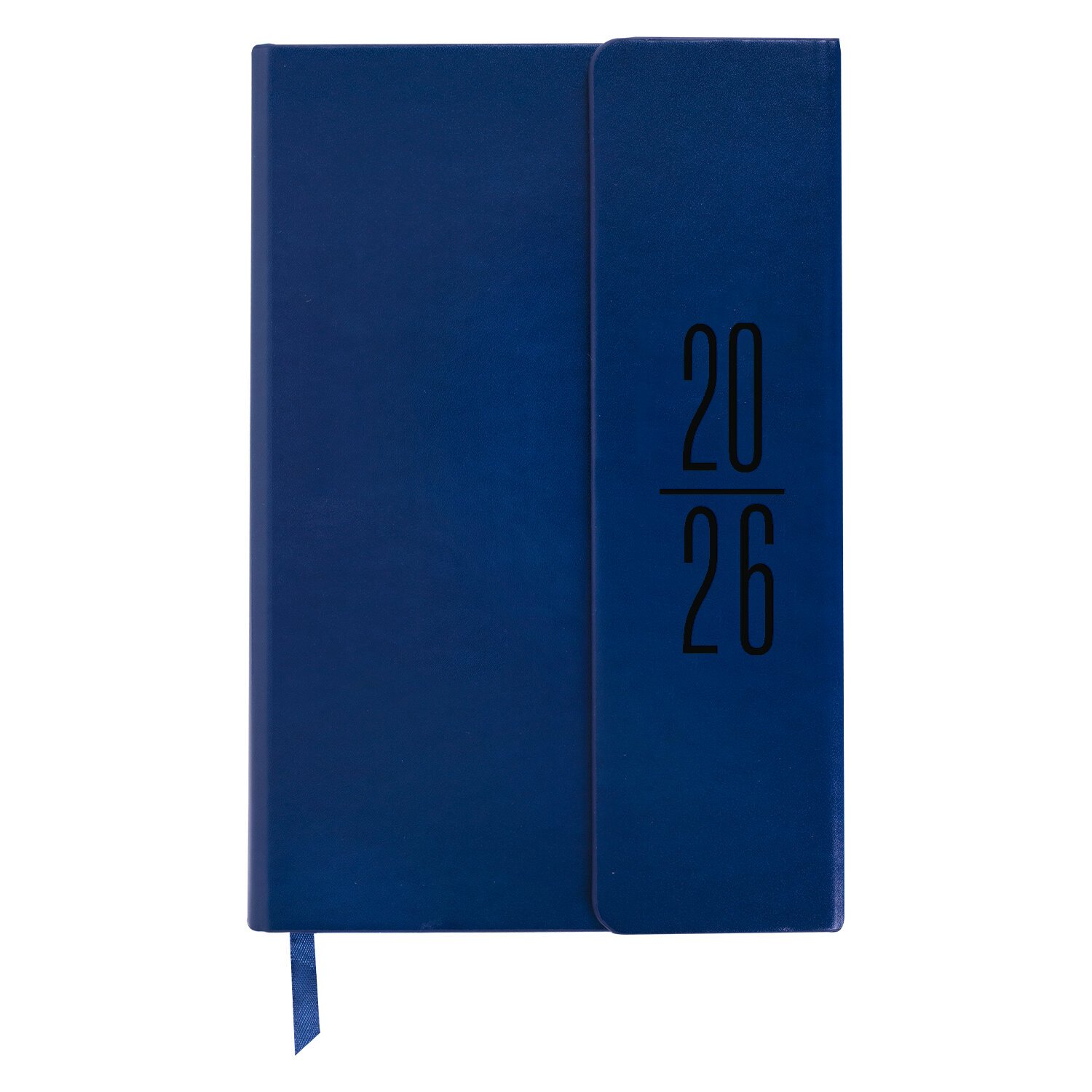 Внутренний блок включает 168 листов белой бумаги плотностью 70 г/м2. Каждая страничка имеет перфорированный угол. Благодаря стандартному формату А5 (138х213 мм) ежедневник удобно использовать как в офисе, так и на выездных деловых встречах. Твердая обложка, стилизованная под гладкую кожу, фиксируется магнитным клапаном, поэтому ежедневник не откроется в сумке или портфеле и страницы не помнутся. Подходит для горячего тиснения. Дополнением является закладка-ляссе, с помощью которой при необходимости можно быстро открыть ежедневник на нужной странице.