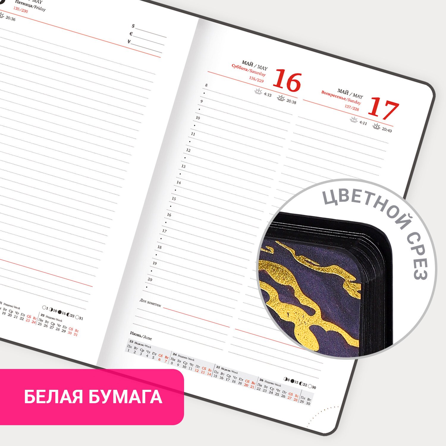 Ежедневник датированный 2026 А5 138x213мм BRAUBERG "Vista", под кожу гибкий, "Leopard", 117452