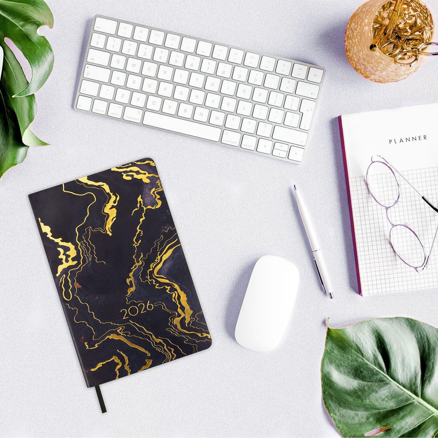 Ежедневник датированный 2026 А5 138x213мм BRAUBERG Vista, под кожу гибкий, Black marble, 117445