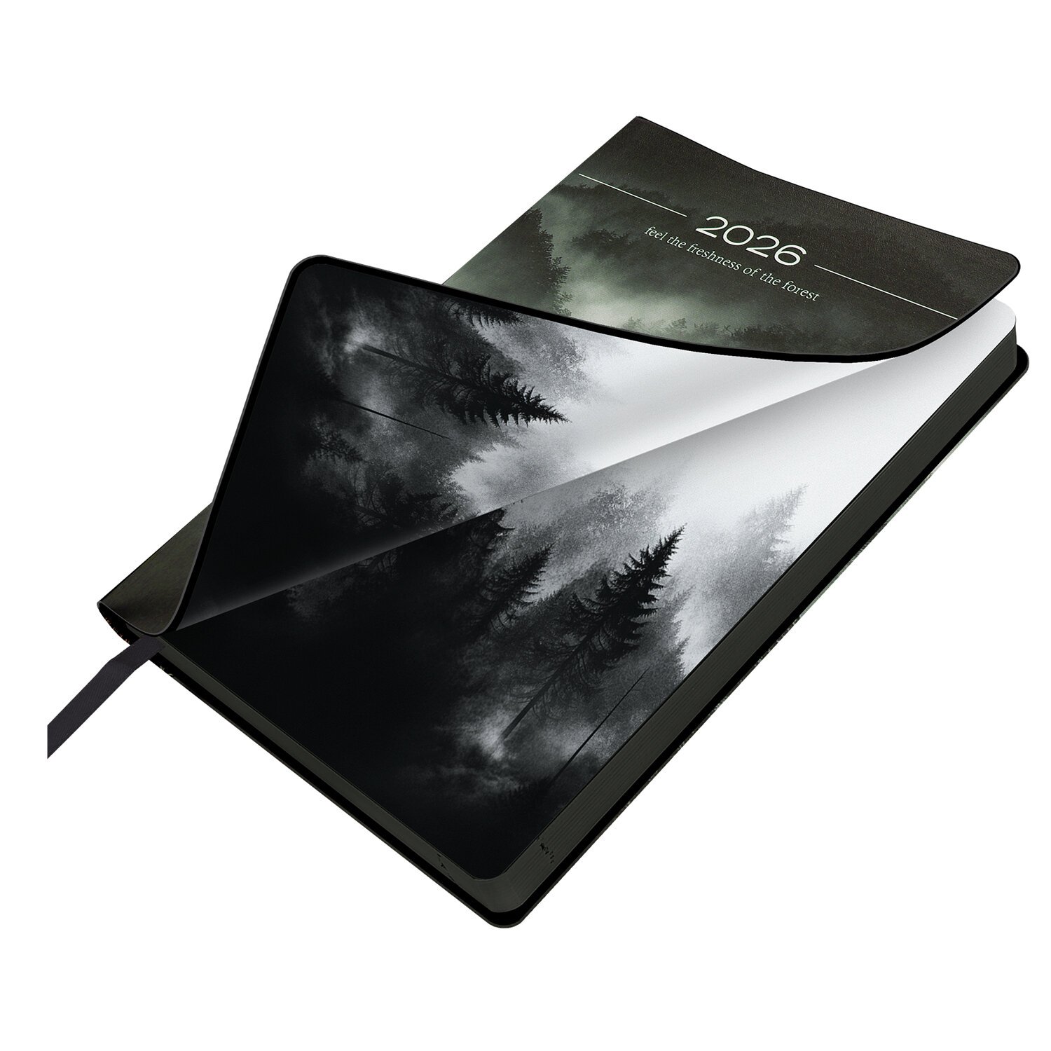 Внутренний блок включает 168 листов белой бумаги плотностью 70 г/м2. Каждая страничка имеет перфорированный угол. Благодаря стандартному формату А5 (138х213 мм) ежедневник удобно использовать как в офисе, так и на выездных деловых встречах.