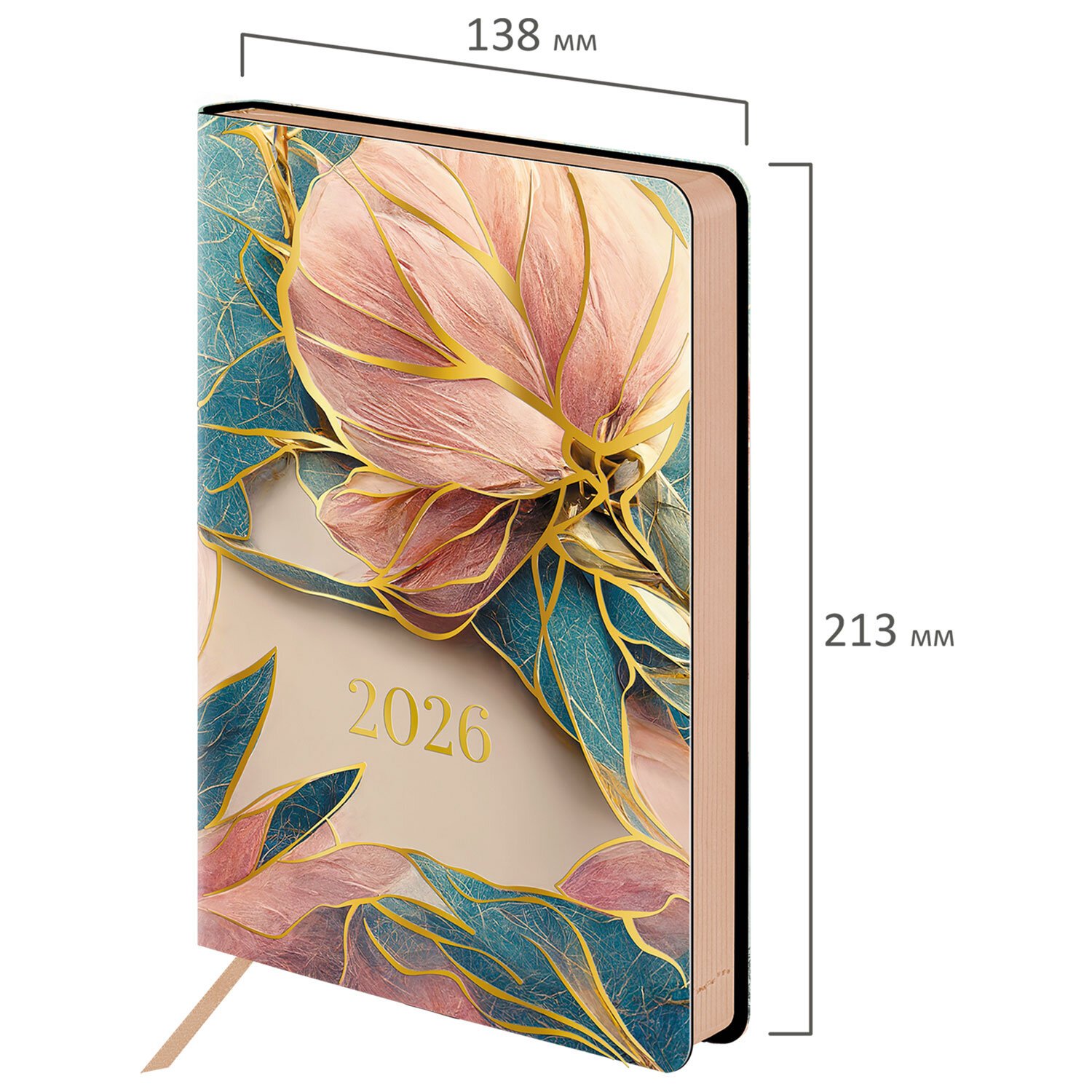 Ежедневник датированный 2026 А5 138x213мм BRAUBERG Vista, под кожу гибкий, "Нежность", 117451