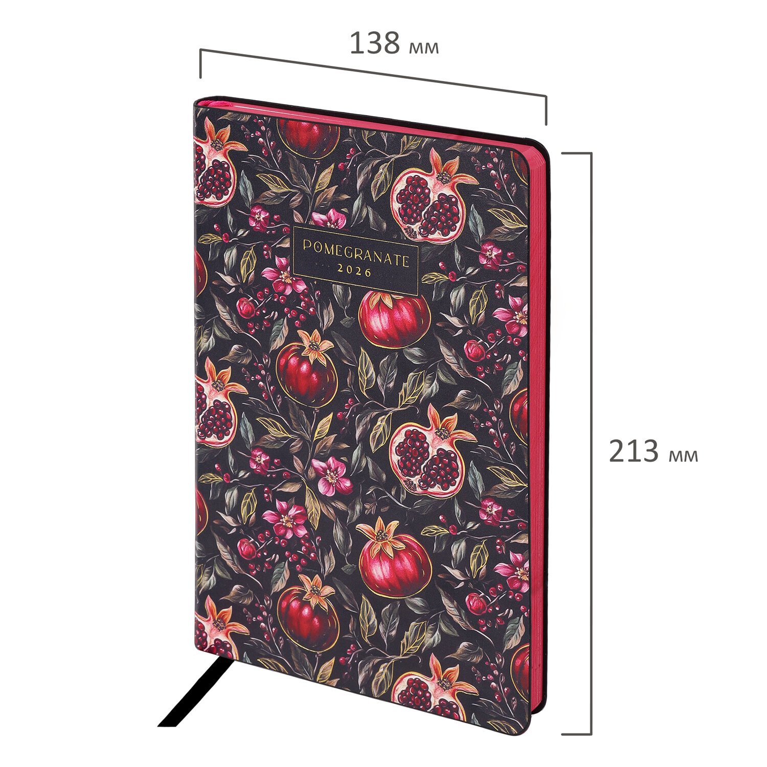 Ежедневник датированный 2026 А5 138x213мм BRAUBERG Vista, под кожу гибкий, Pomegranate, 117449