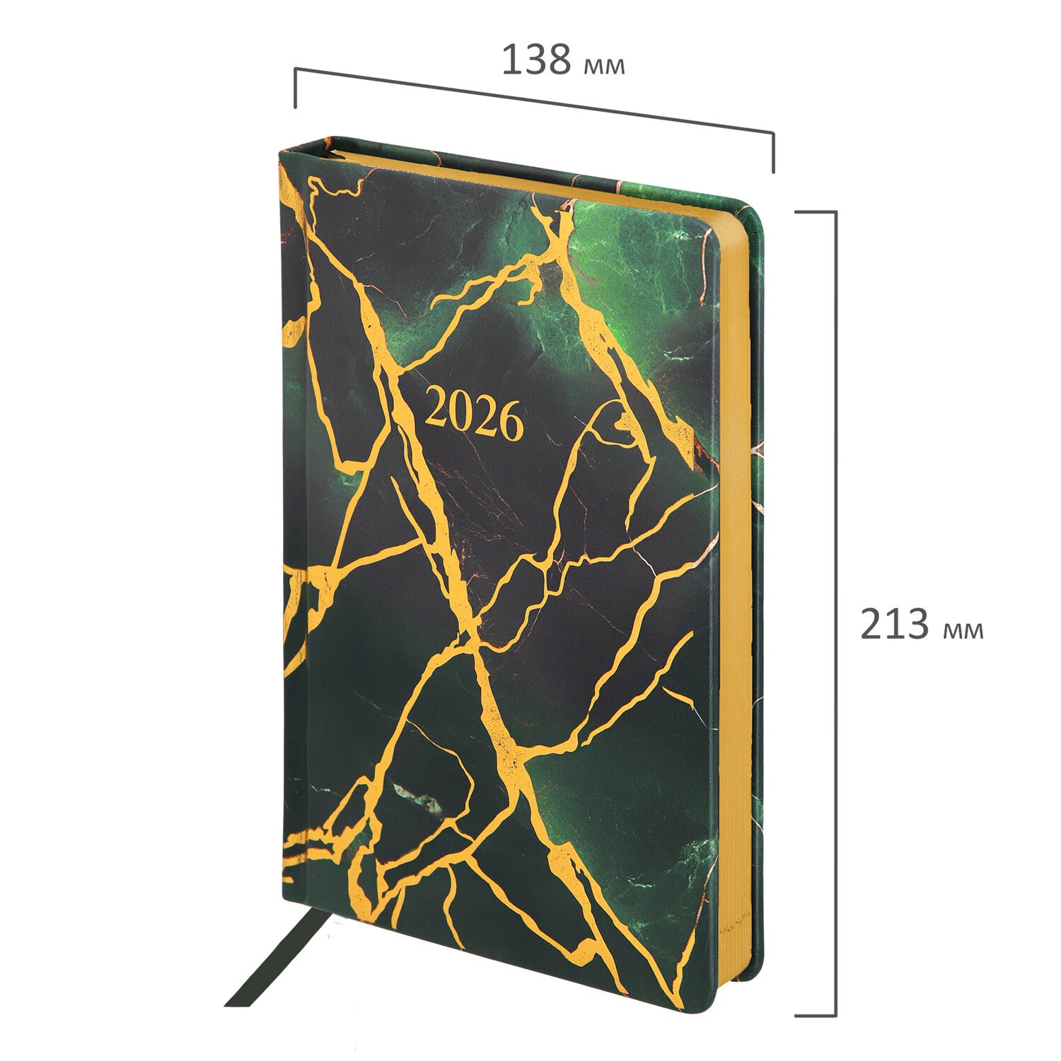 Ежедневник датированный 2026 А5 138x213мм BRAUBERG "Vista", под кожу твердый, "Green marble", 117456
