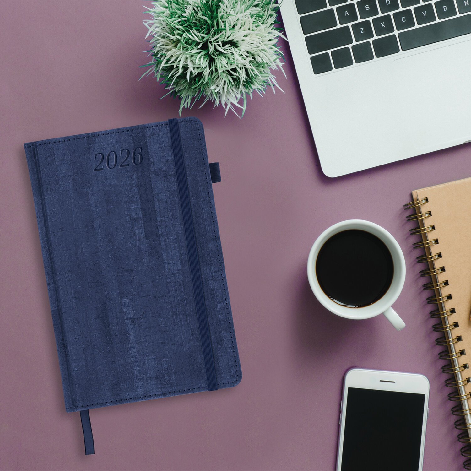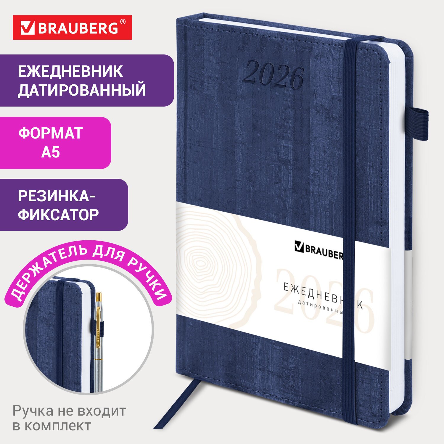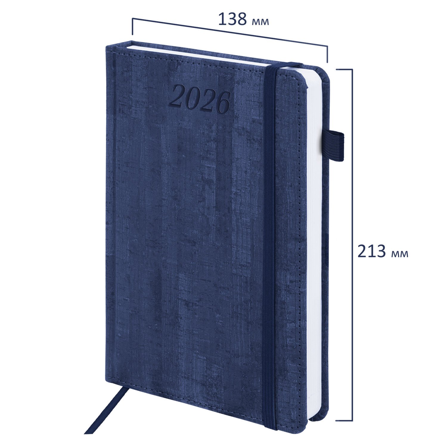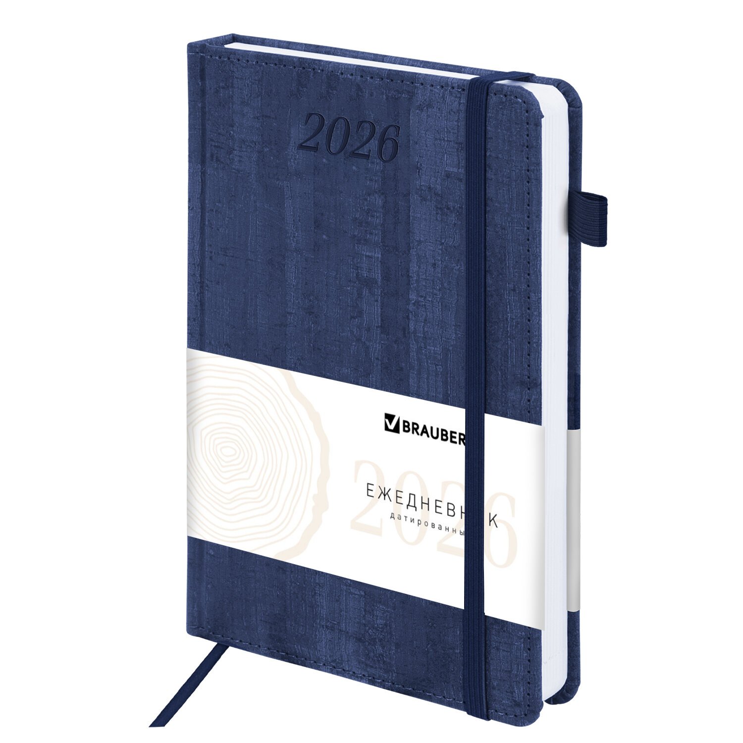 Ежедневник датированный 2026 А5 138x213мм BRAUBERG Wood, под кожу, держатель для ручки, синий, 117106