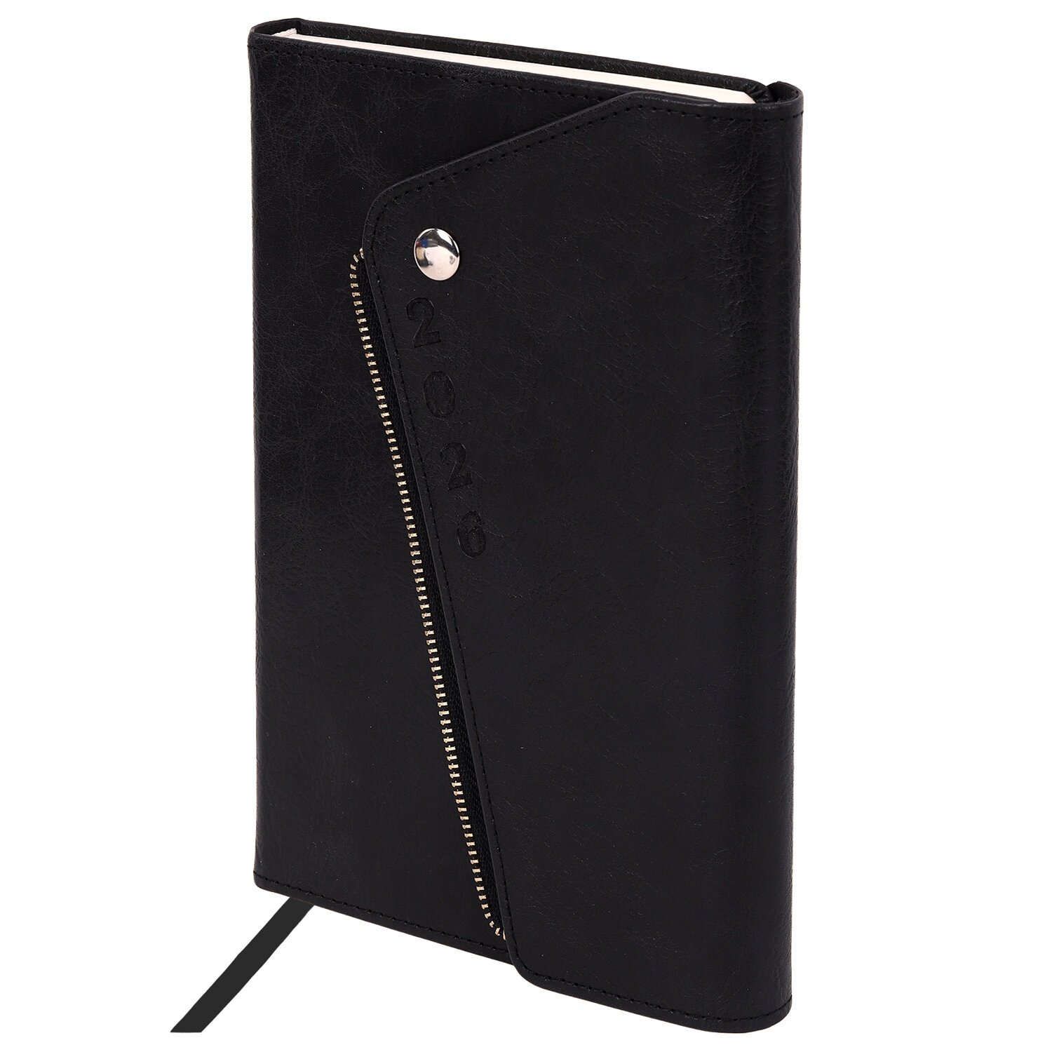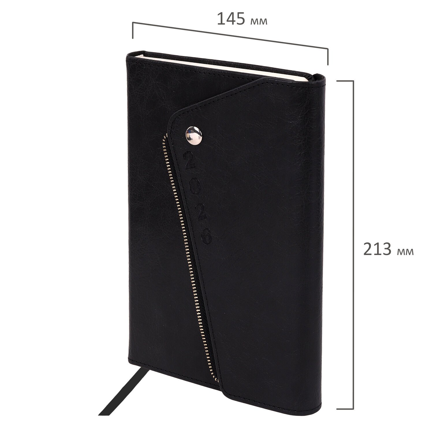 Ежедневник датированный 2026 А5 145х213мм BRAUBERG Jacket под кожу, клапан, держатель, черный 117399