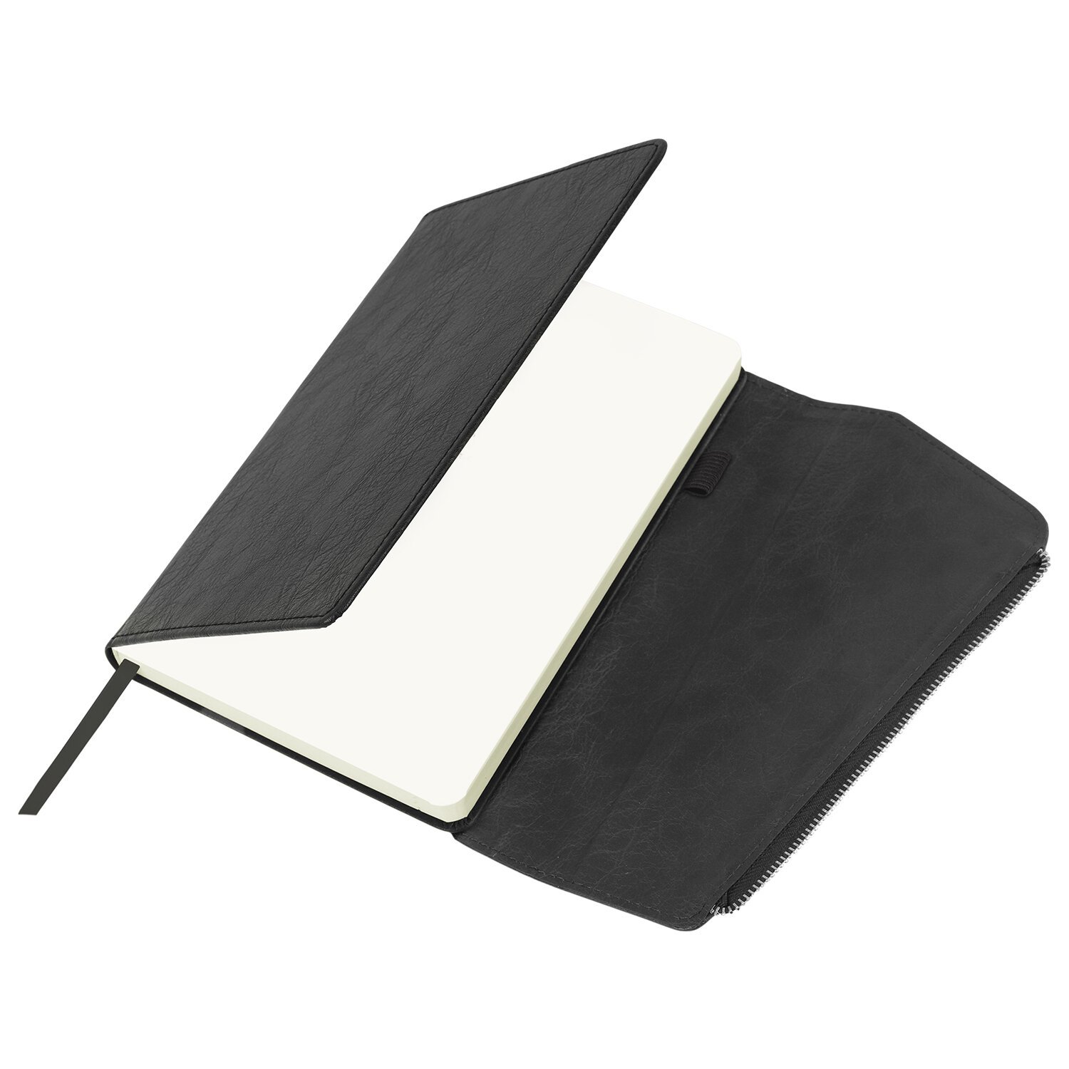 Твердая обложка стилизована под текстурную кожу и имеет интересную деталь в виде магнитного клапана декорированного молнией и кнопкой. Благодаря клапану ежедневник не откроется в сумке или портфеле. Подходит для горячего тиснения. Дополнением является закладка-ляссе, с помощью которой при необходимости можно быстро открыть ежедневник на нужной странице, и держатель для ручки. Ежедневник снабжен справочным материалом. В конце имеются 4 страницы для записей и заметок.