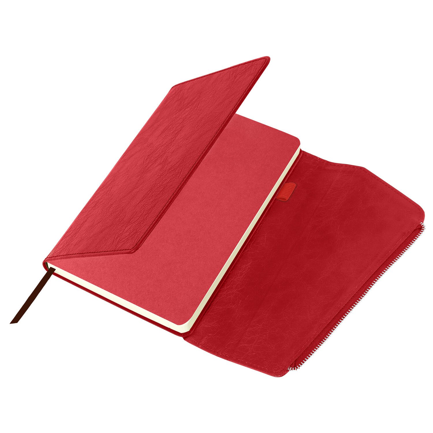 Твердая обложка стилизована под текстурную кожу и имеет интересную деталь в виде магнитного клапана декорированного молнией и кнопкой. Благодаря клапану ежедневник не откроется в сумке или портфеле. Подходит для горячего тиснения. Дополнением является закладка-ляссе, с помощью которой при необходимости можно быстро открыть ежедневник на нужной странице, и держатель для ручки. Ежедневник снабжен справочным материалом. В конце имеются 4 страницы для записей и заметок.