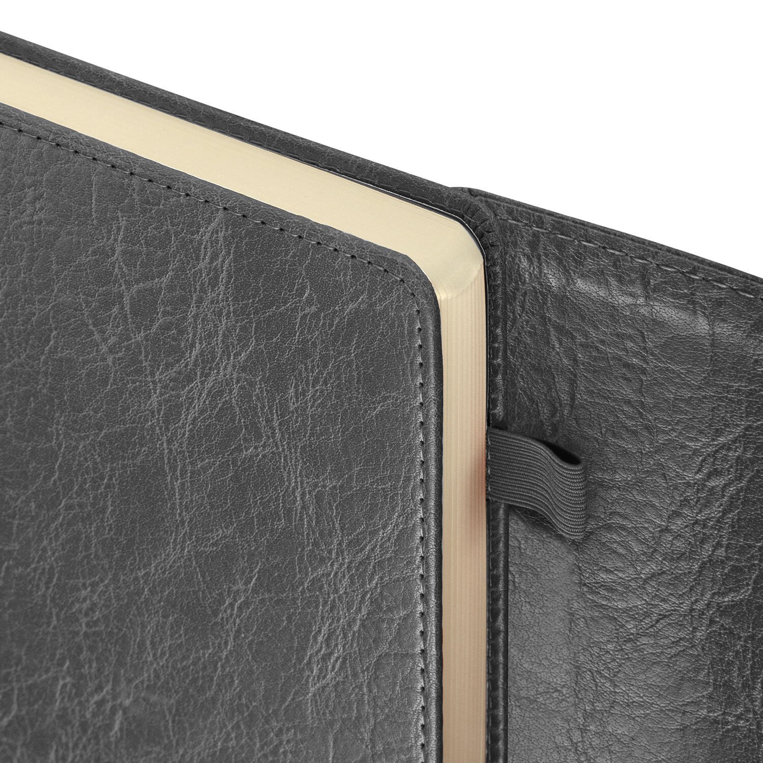 Ежедневник датированный 2026 А5 138х213мм BRAUBERG Essential, под кожу, держатель, серый, 117397