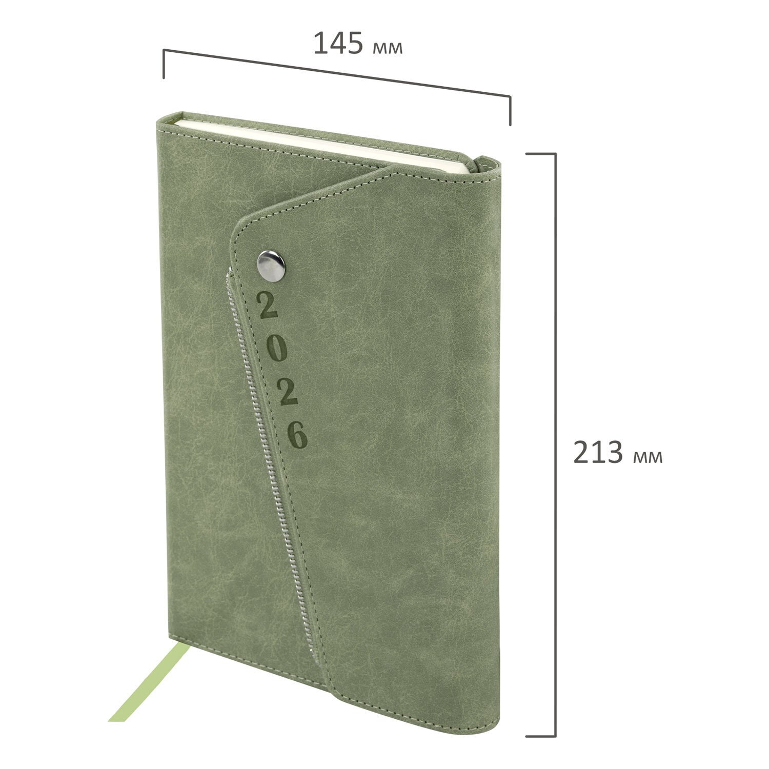 Ежедневник датированный 2026 А5 145х213мм BRAUBERG Jacket под кожу, клапан, держатель, зеленый 117402