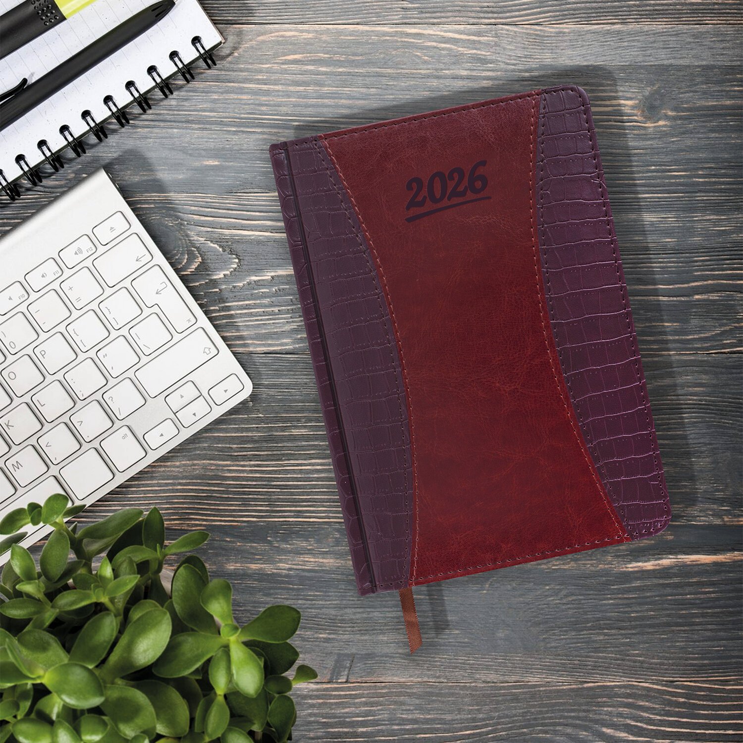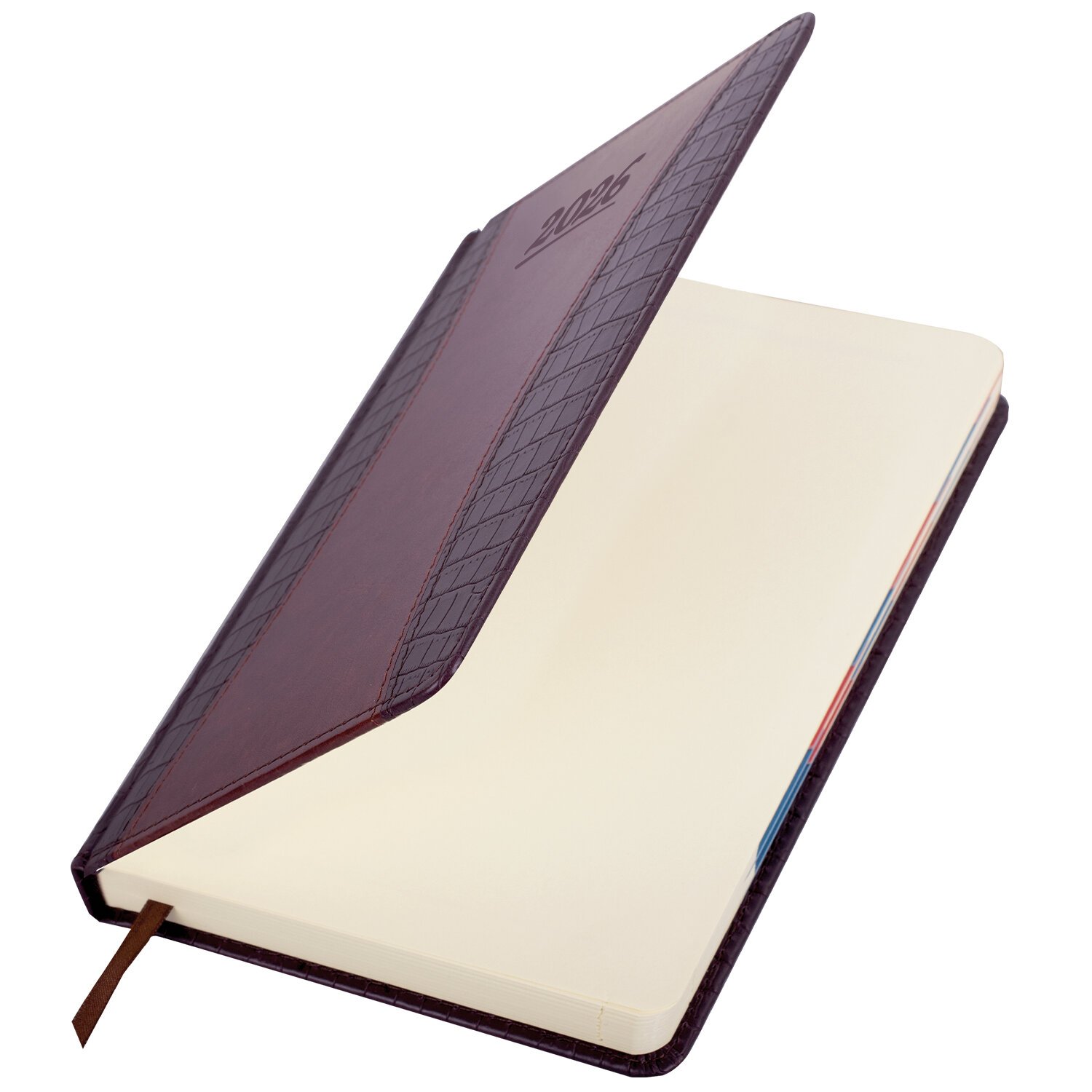 Ежедневник датированный 2026 А5 138x213мм BRAUBERG Cayman, под кожу, бордовый/черный, 117046
