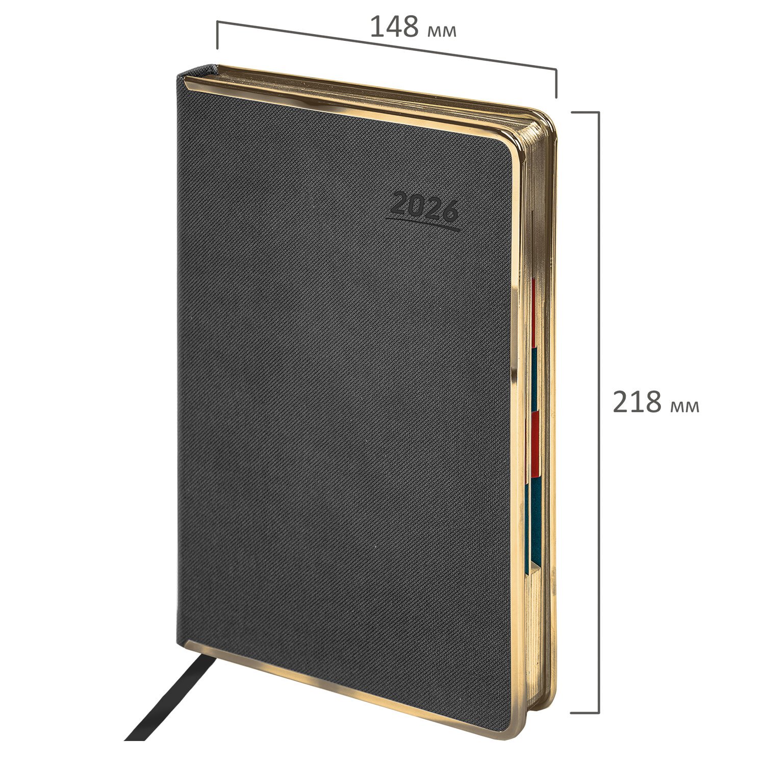 Ежедневник датированный 2026 А5 148х218мм GALANT Infinity Gold, под кожу, серый, 117502