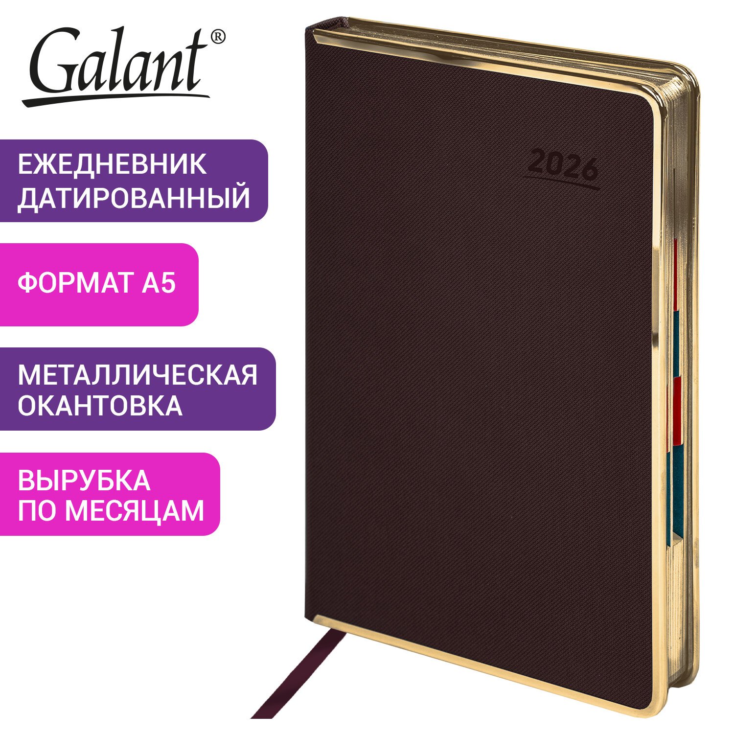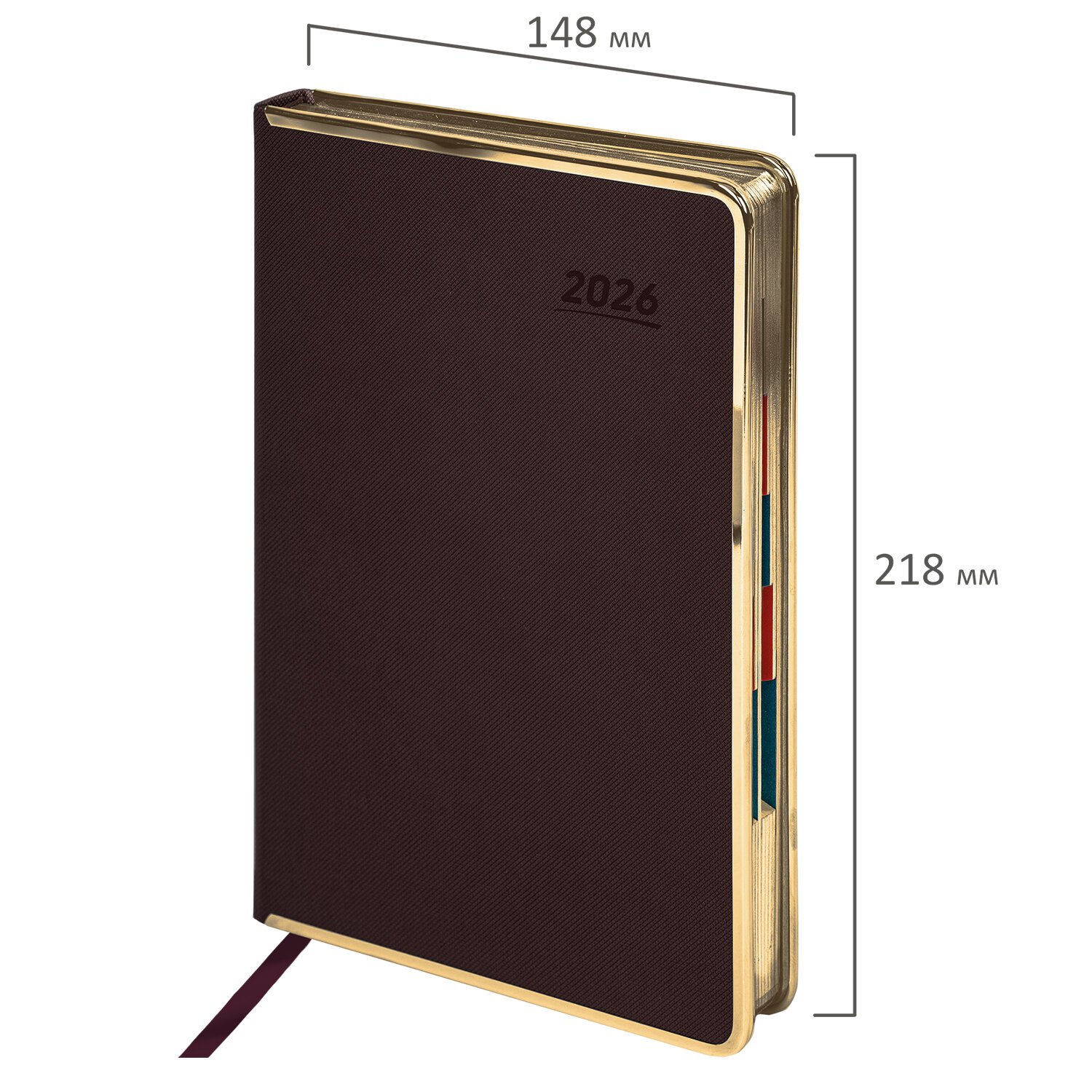 Ежедневник датированный 2026 А5 148х218мм GALANT Infinity Gold, под кожу, темно-коричневый, 117501