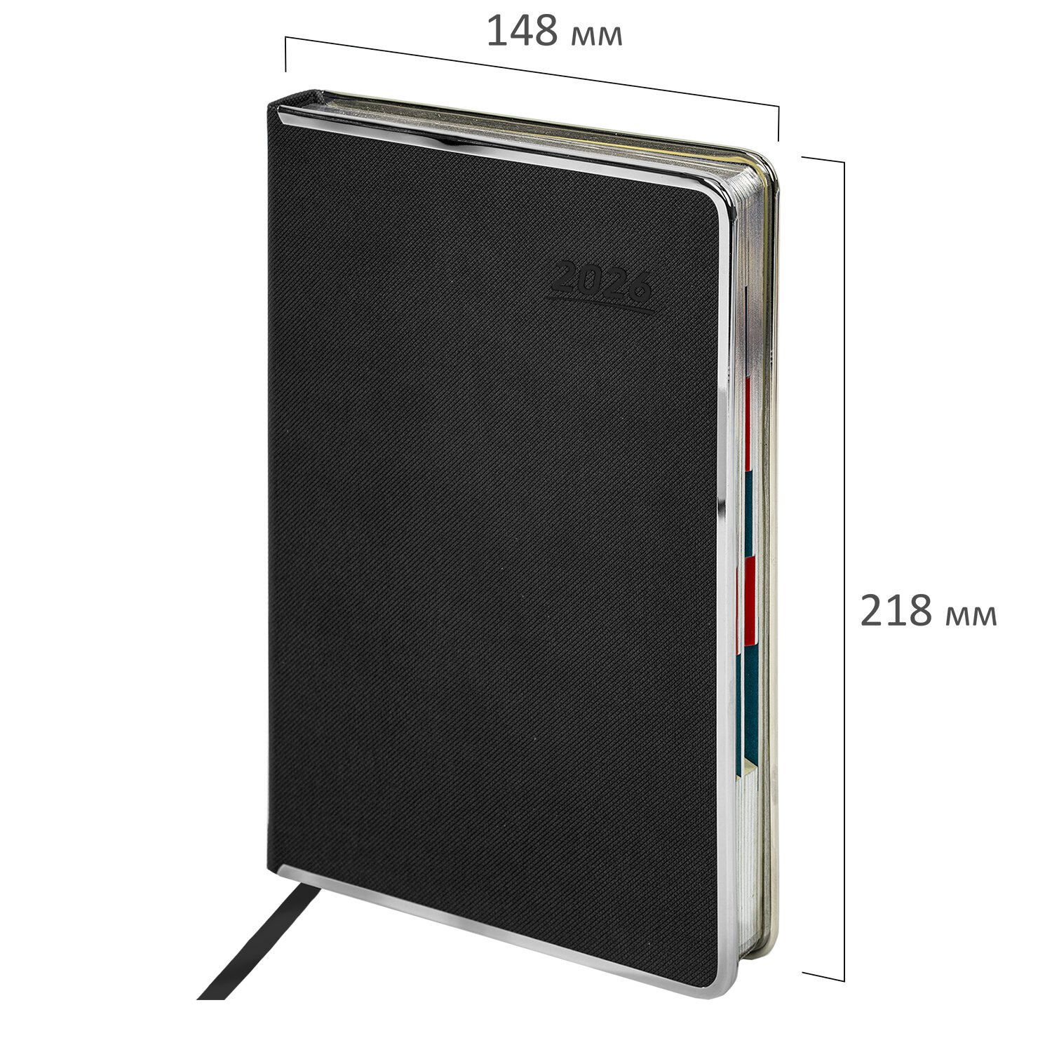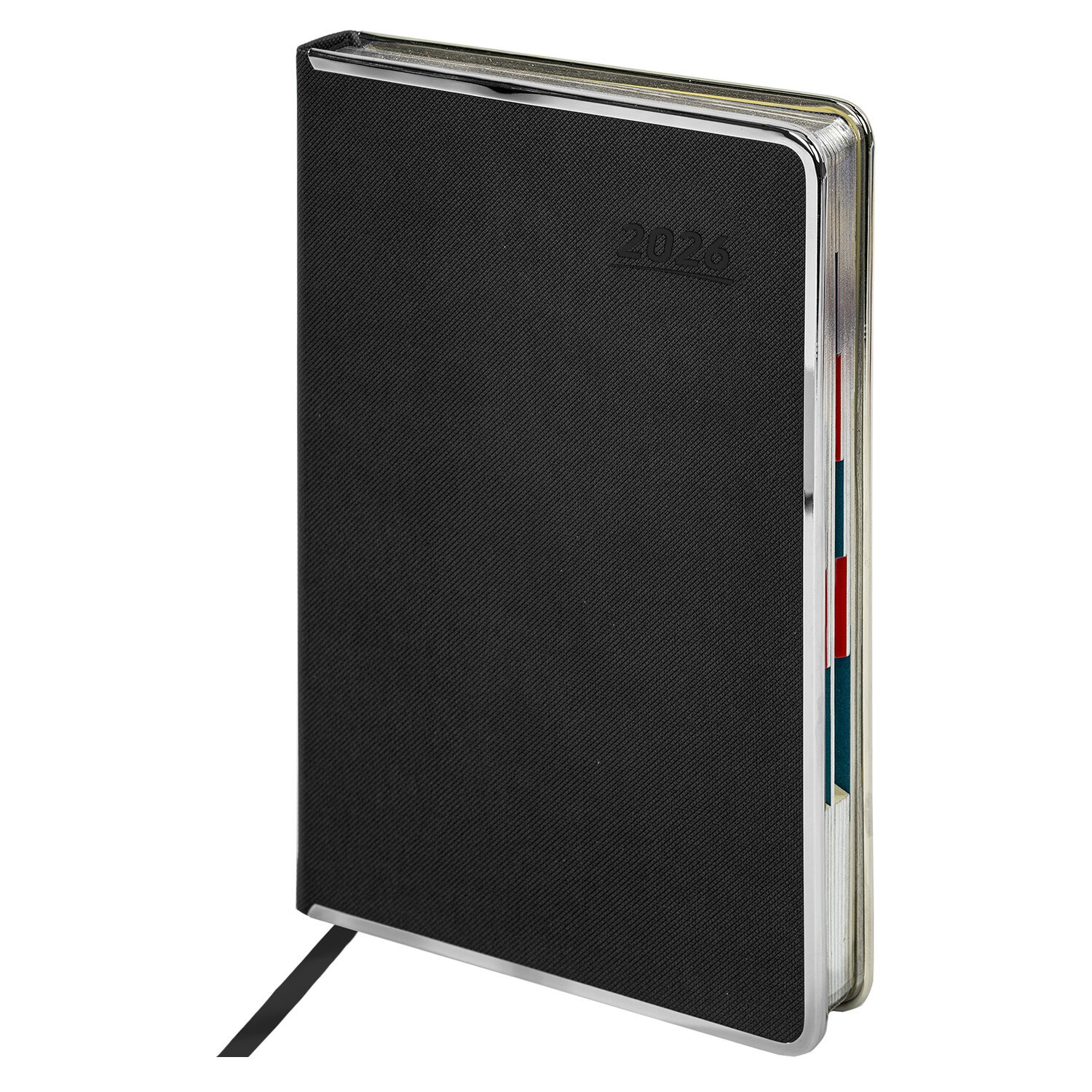 Ежедневник датированный 2026 А5 148х218мм GALANT Infinity Silver, под кожу, черный, 117495