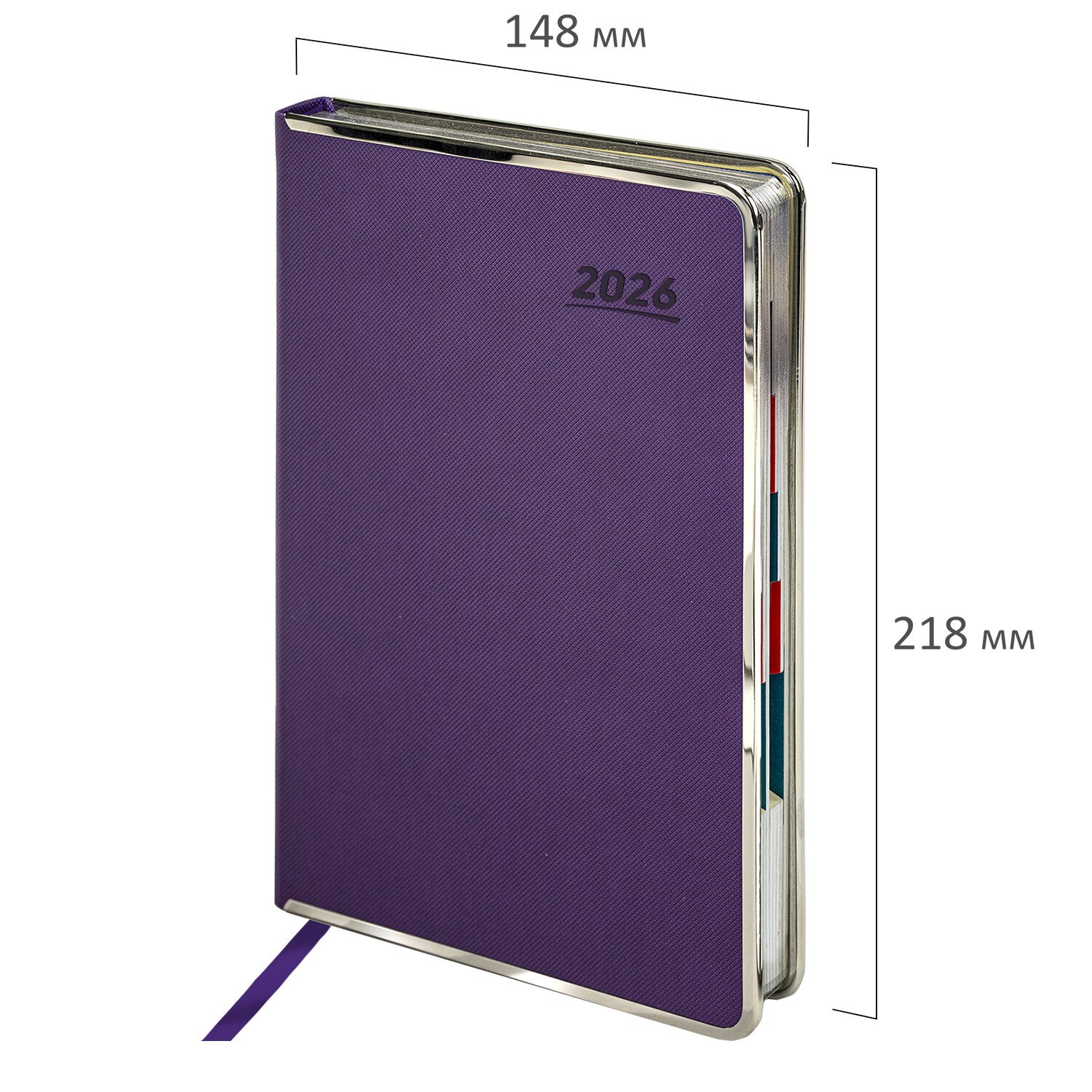 Ежедневник датированный 2026 А5 148х218мм GALANT Infinity Silver, под кожу, фиолетовый, 117498