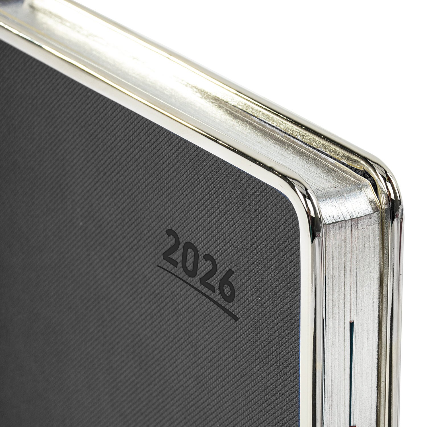 Внутренний блок включает 168 листов тонированной бумаги цвета "слоновая кость" плотностью 70 г/м2. Каждая страничка имеет перфорированный угол. Благодаря стандартному формату А5 (148х218 мм) ежедневник удобно использовать как в офисе, так и на выездных деловых встречах. Твердая обложка выполнена под кожу с отделкой из металлических накладок, что увеличивает ее износоустойчивость. Срез ежедневника покрыт серебряной фольгой в цвет металлических накладок, и это придает ему особый шарм. Материал обложки подходит для горячего тиснения.