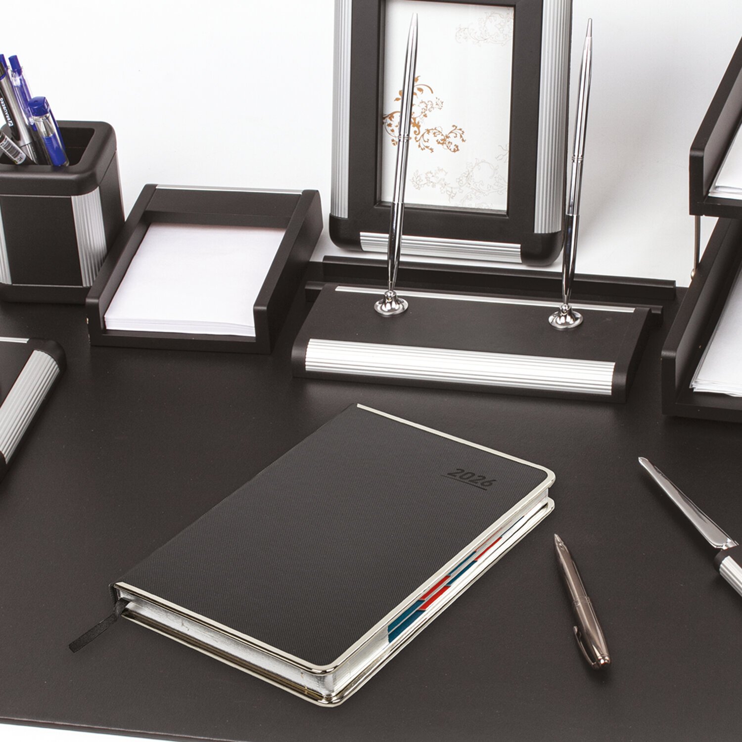 Ежедневник датированный 2026 А5 148х218мм GALANT Infinity Silver, под кожу, черный, 117495
