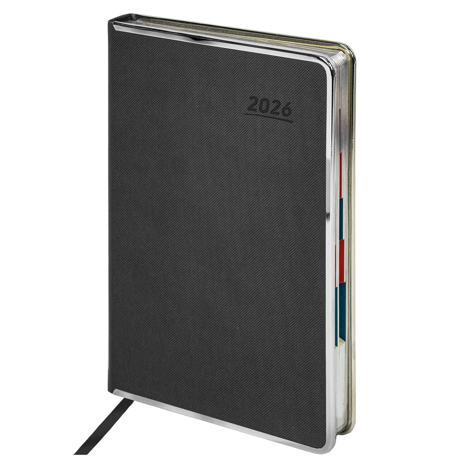 Дополнением является закладка-ляссе, с помощью которой при необходимости можно быстро открыть ежедневник на нужной странице, а также вырубка по месяцам. Помимо прочего, ежедневник снабжен обширным справочным материалом. В конце ежедневника есть 6 страниц для записей и заметок. Выполнен в сером цвете.