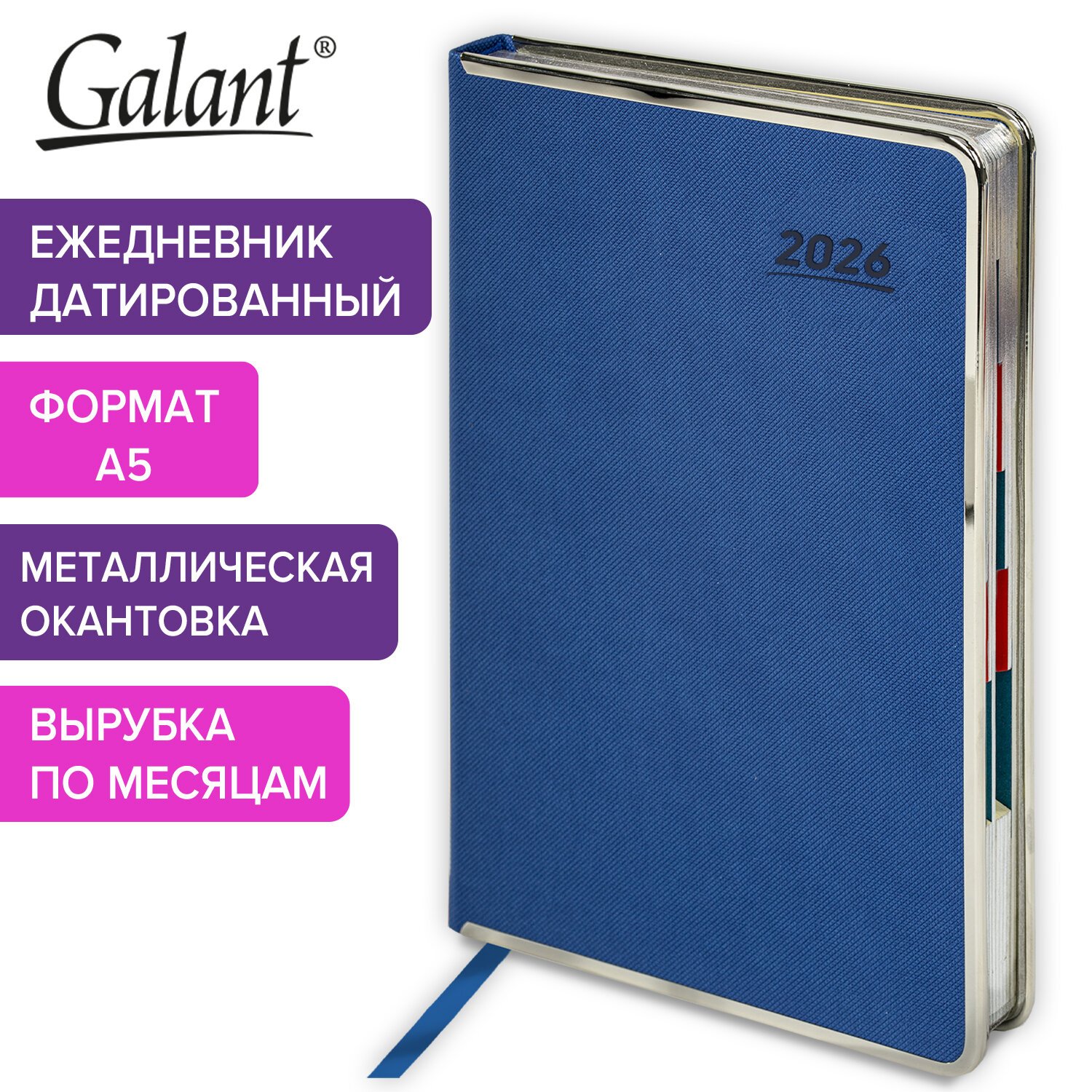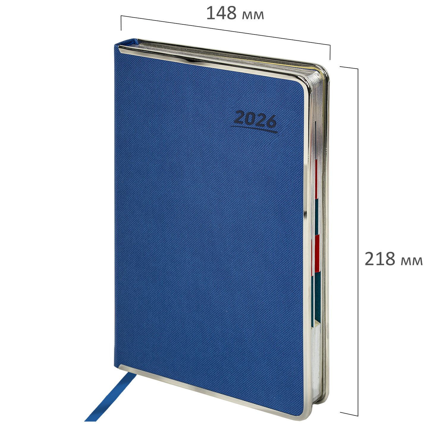 Ежедневник датированный 2026 А5 148х218мм GALANT Infinity Silver, под кожу, синий, 117496