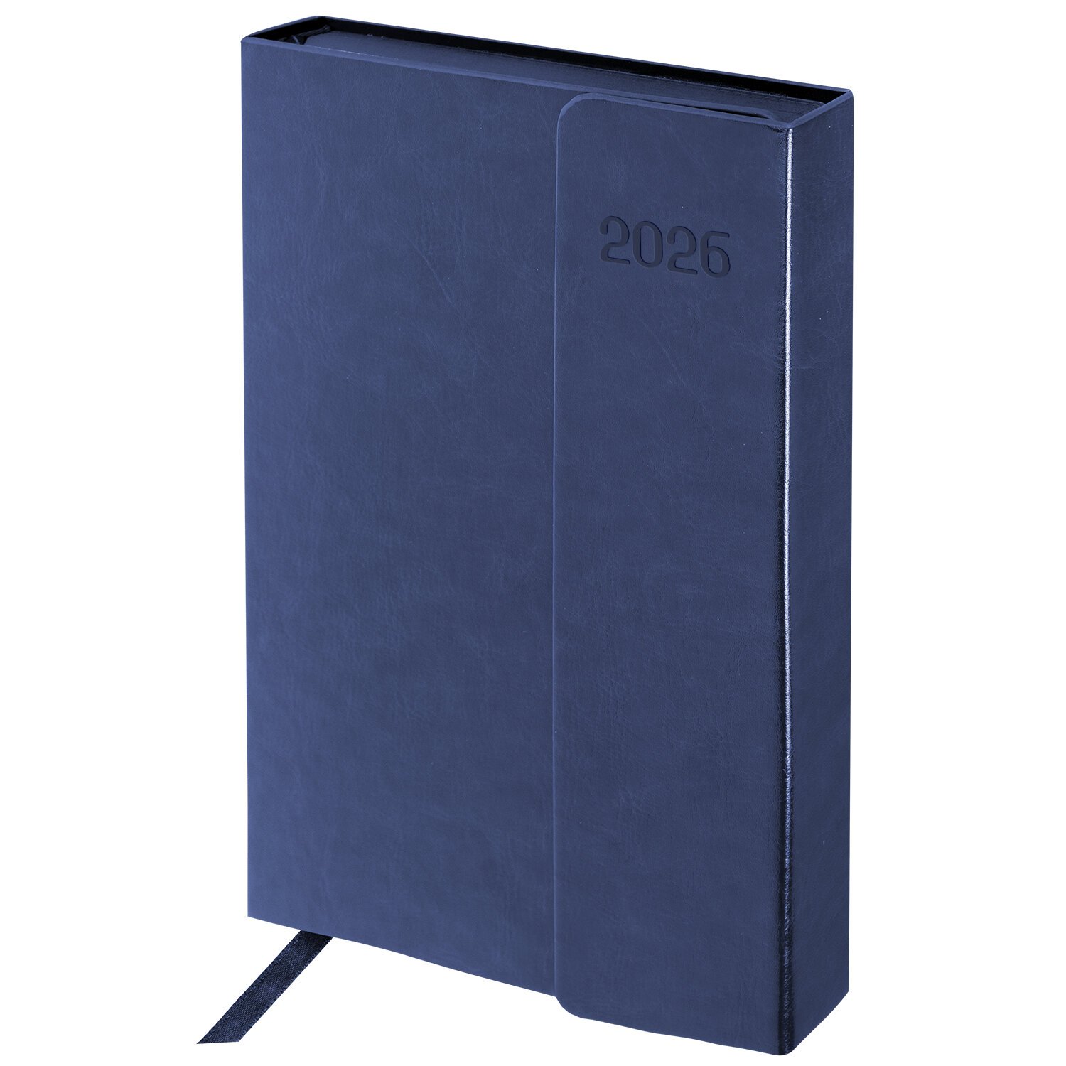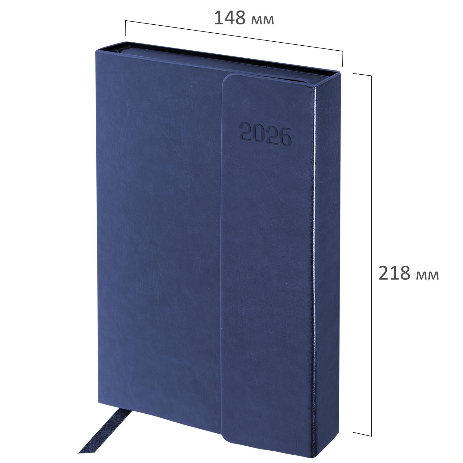 Внутренний блок включает 168 листов тонированной бумаги плотностью 70 г/м2. Каждая страничка имеет перфорированный угол. Благодаря стандартному формату А5 (148х218 мм) ежедневник удобно использовать как в офисе, так и на выездных деловых встречах. Интегральная обложка стилизована под гладкую кожу строгого синего цвета, фиксируется магнитным клапаном, поэтому ежедневник не откроется в сумке или портфеле и страницы не помнутся. Подходит для горячего тиснения. Срез и форзац ежедневника окрашены в цвет обложки, что придает ему особый шарм.
