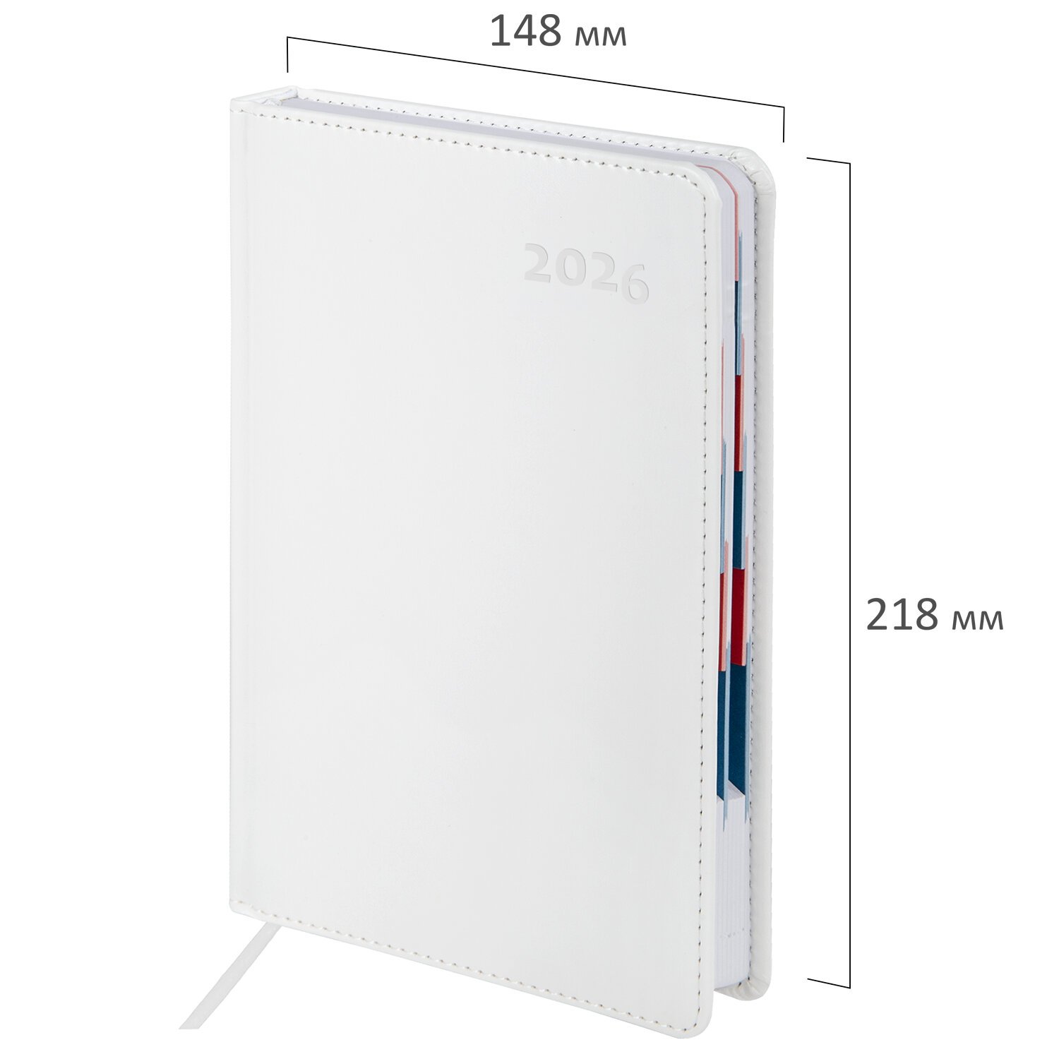 Ежедневник датированный 2026 А5 148х218мм GALANT White, под кожу, белый, 117494