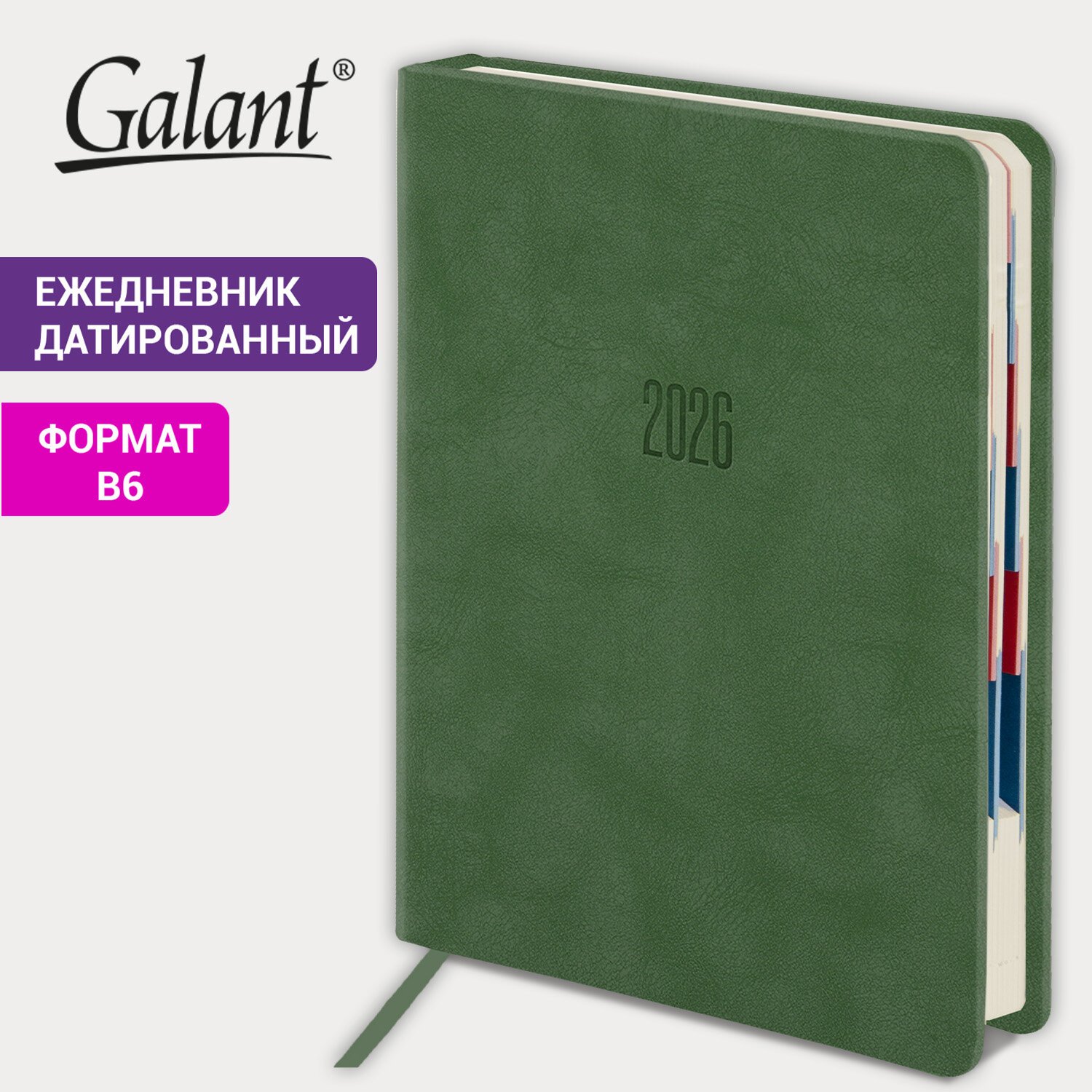 Ежедневник датированный 2026 B6 125х173мм GALANT Vivid, под кожу, зеленый, 117409