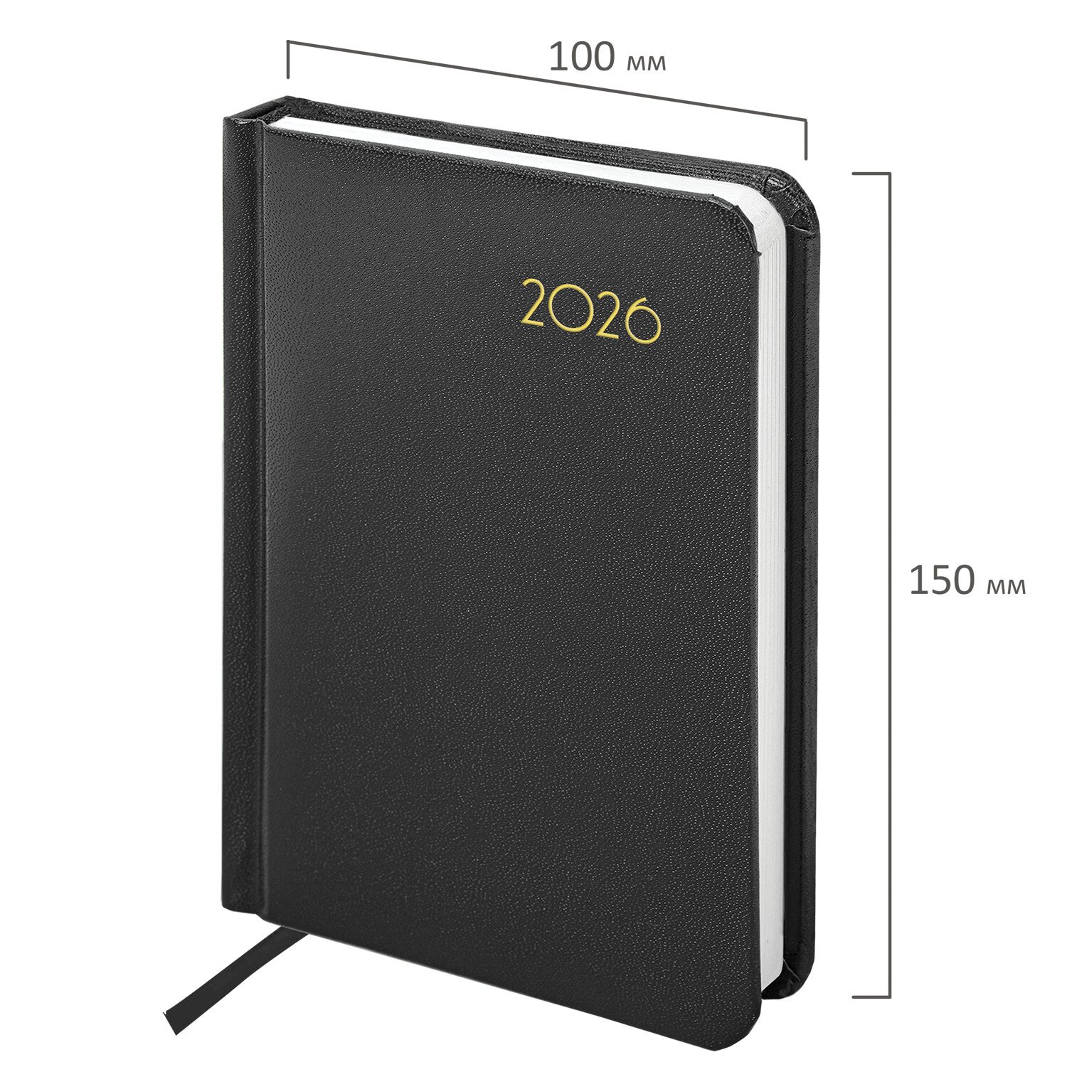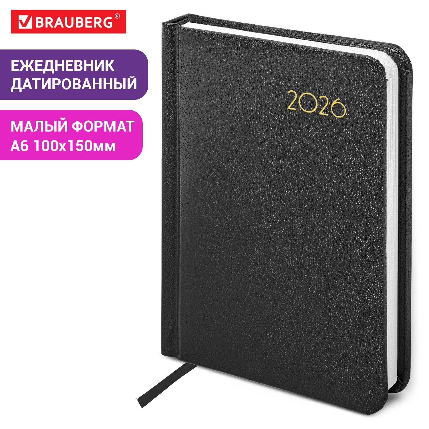 Ежедневник датированный 2026 МАЛЫЙ ФОРМАТ 100х150мм А6, BRAUBERG Select, балакрон, черный, 117260