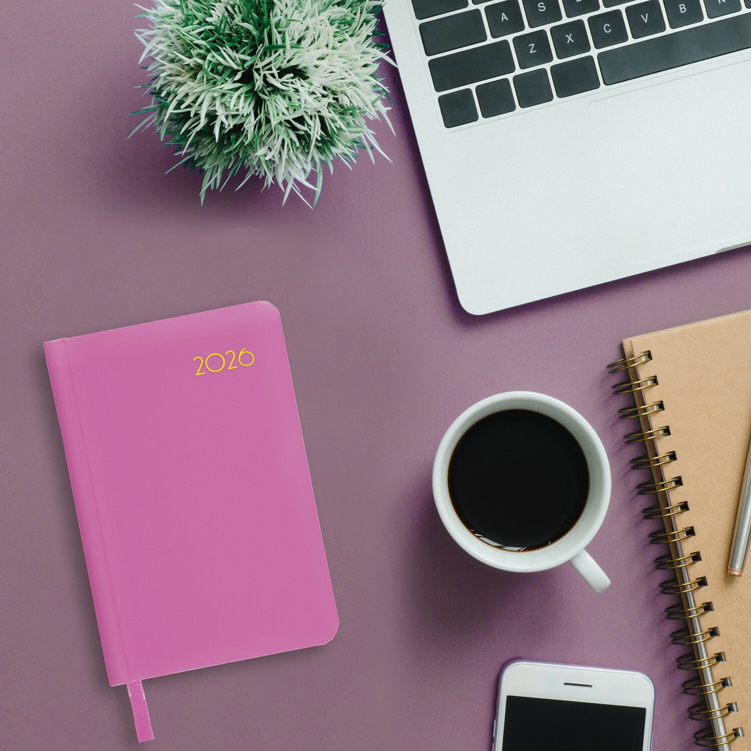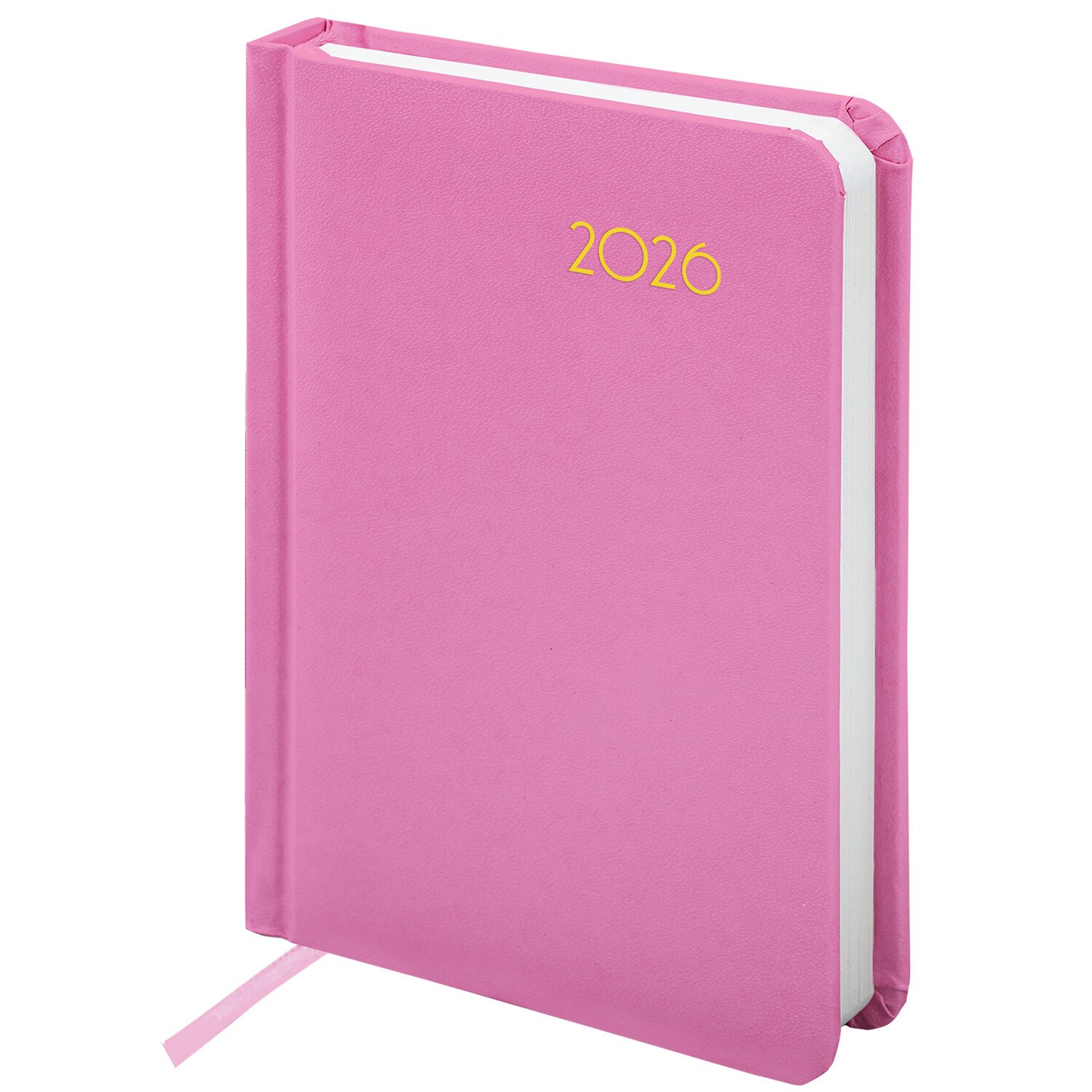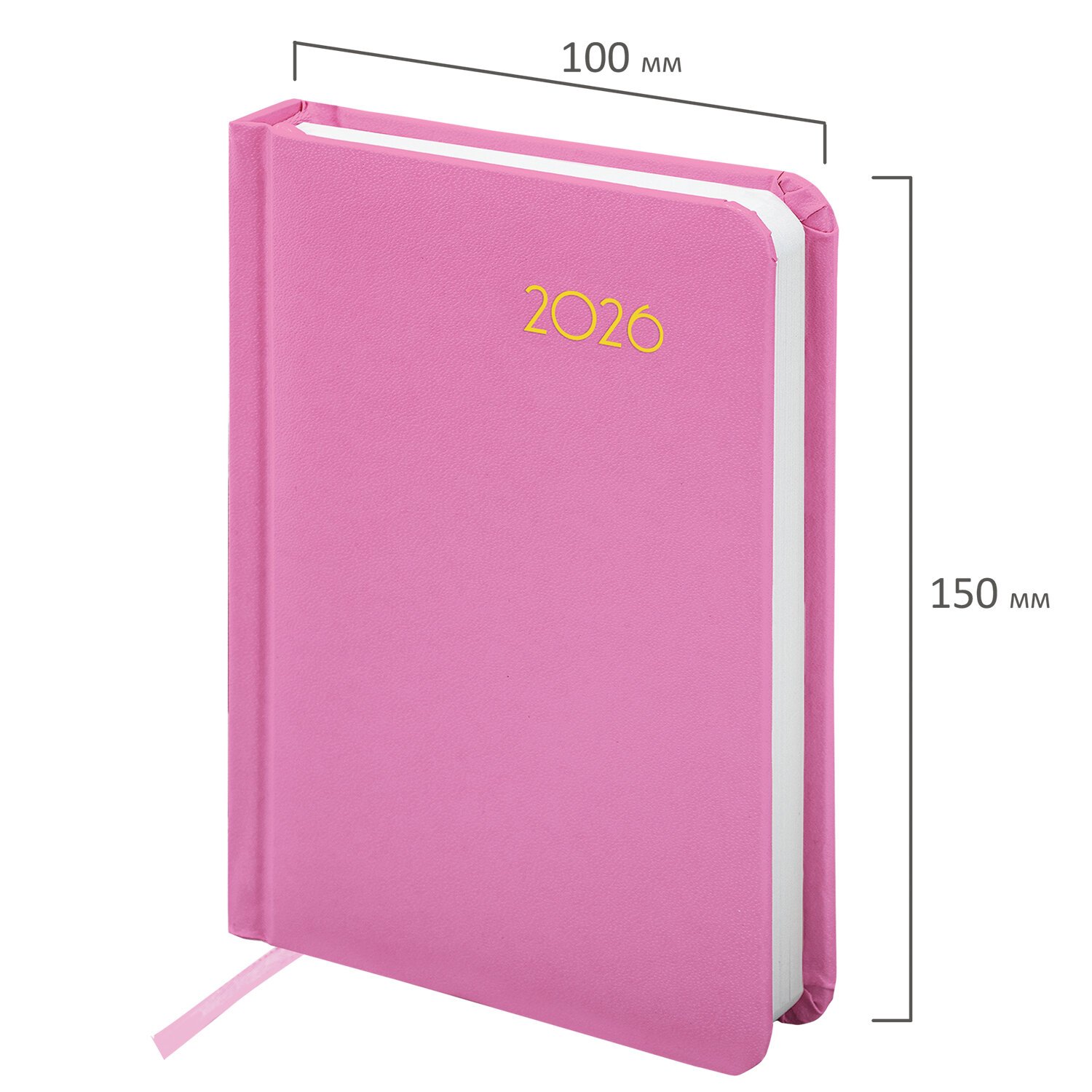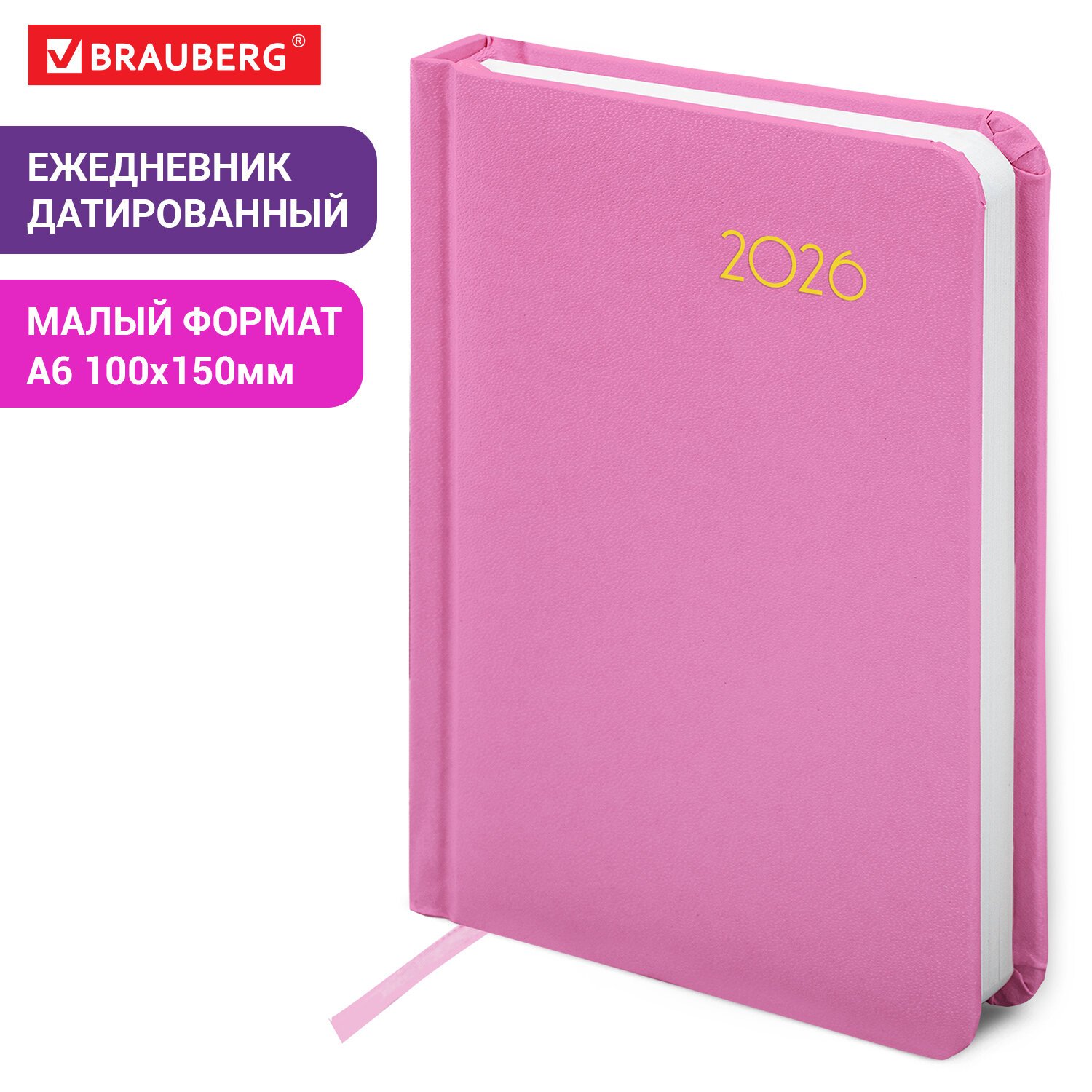 Ежедневник датированный 2026 МАЛЫЙ ФОРМАТ 100х150мм А6, BRAUBERG Select, балакрон, розовый, 117262