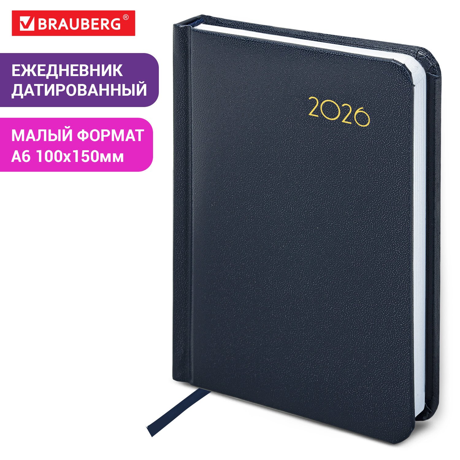 Ежедневник датированный 2026 МАЛЫЙ ФОРМАТ 100х150мм А6, BRAUBERG Select, балакрон, темно-синий, 117259