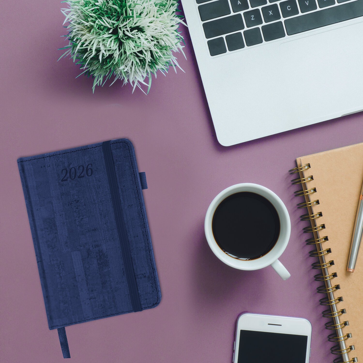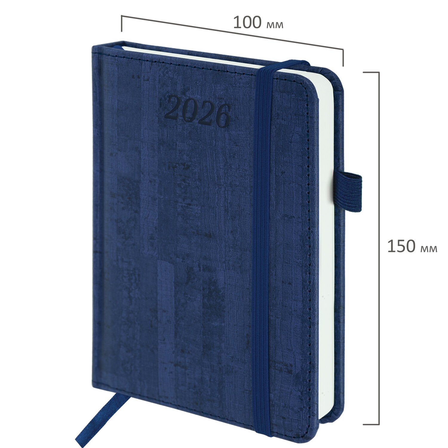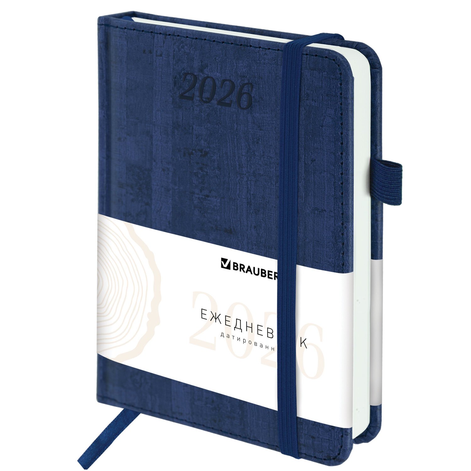 Ежедневник датированный 2026 МАЛЫЙ ФОРМАТ 100х150мм А6, BRAUBERG Wood, под кожу, синий, 117264