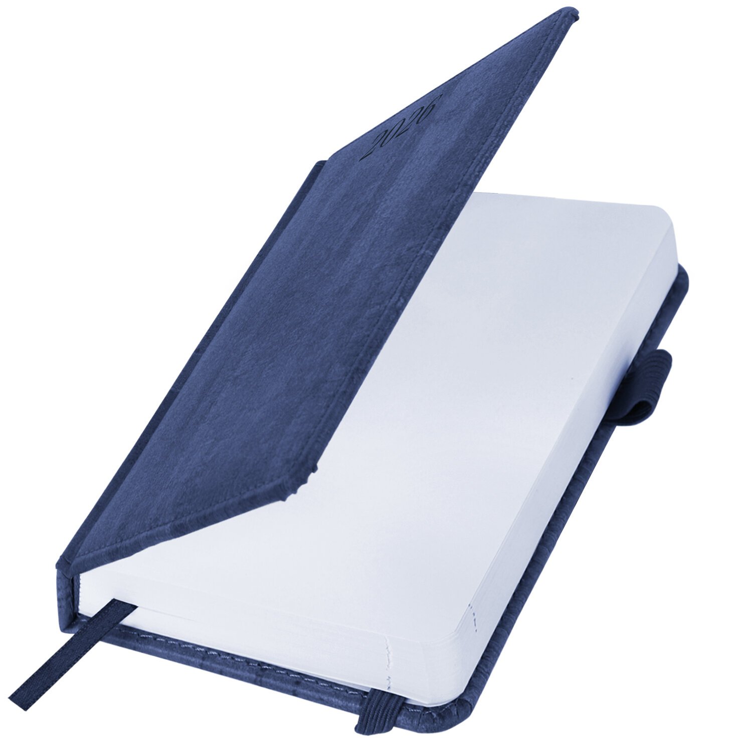 Внутренний блок включает 168 листов белой бумаги плотностью 70 г/м2. Каждая страничка имеет перфорированный угол. Благодаря малому формату А6 (100х150 мм) ежедневник удобно использовать как в офисе, так и на выездных деловых встречах. Твердая обложка синего цвета стилизована под благородное дерево. Подходит для горячего тиснения. Снабжен резинкой-фиксатором, благодаря чему ежедневник не откроется в сумке или портфеле.