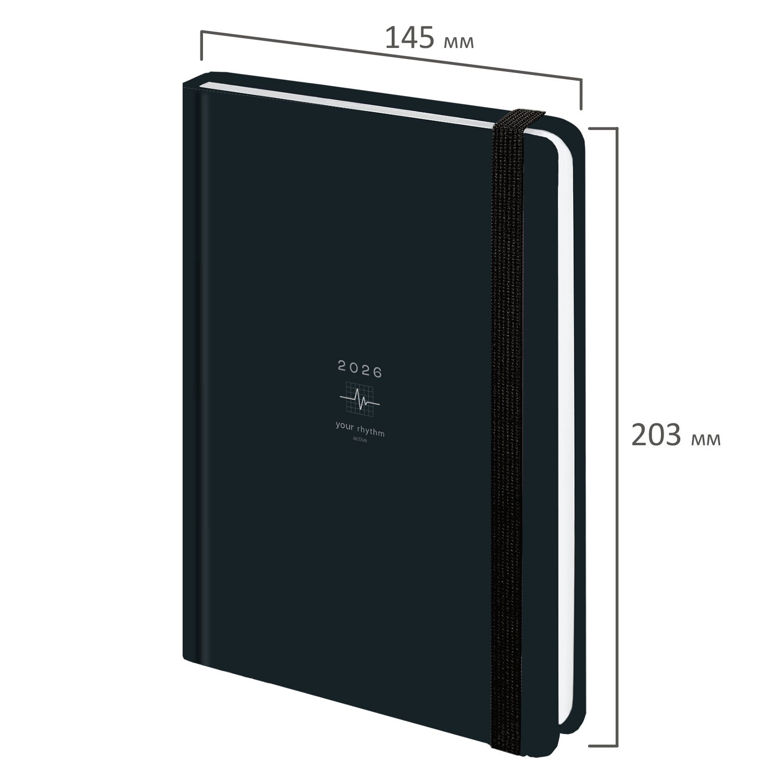 Ежедневник датированный 2026 с резинкой 145х203 мм, А5, BRAUBERG, твердый, фольга, "Пульс", 117341